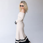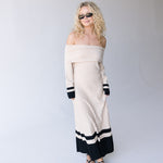 Indulge in the comfort and style of the Poppy Off Shoulder Maxi Dress. This versatile dress features a trendy off-shoulder design, perfect for any occasion. With long sleeves and a choice of maxi or midi length, it offers both warmth and fashion in one beautiful package.