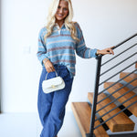 Quin Stripe Polo Sweater -Dusty Blue Combo
