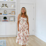 Add a touch of romance to your wardrobe with the Remi Midi Dress. This natural multi-colored dress features delicate floral eyelet detailing, a flattering corset-style bodice, and tiered midi-length skirt. Perfect for any occasion, this dress combines style and comfort effortlessly.