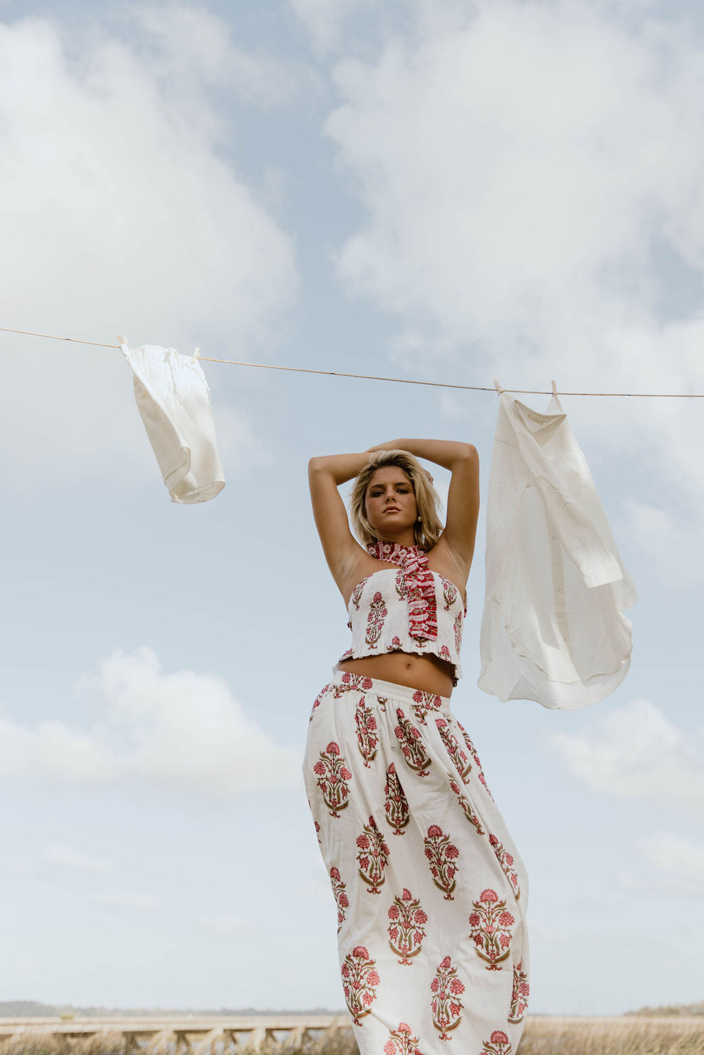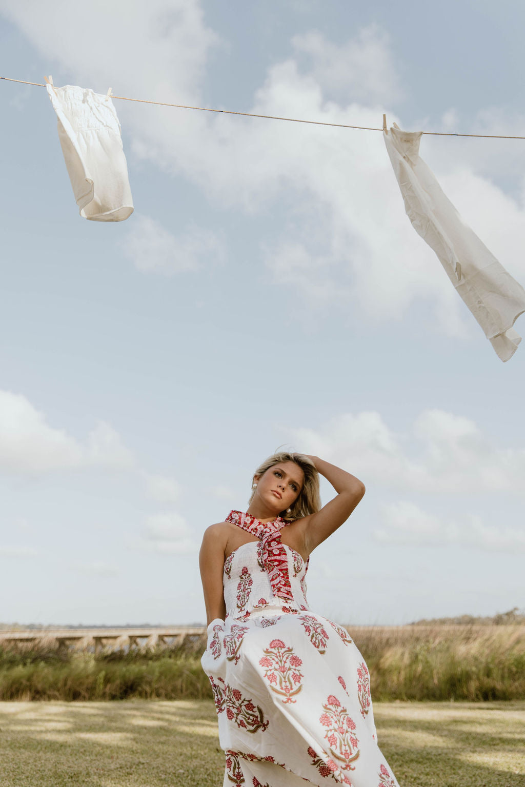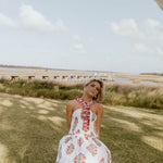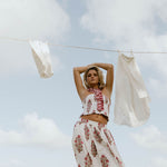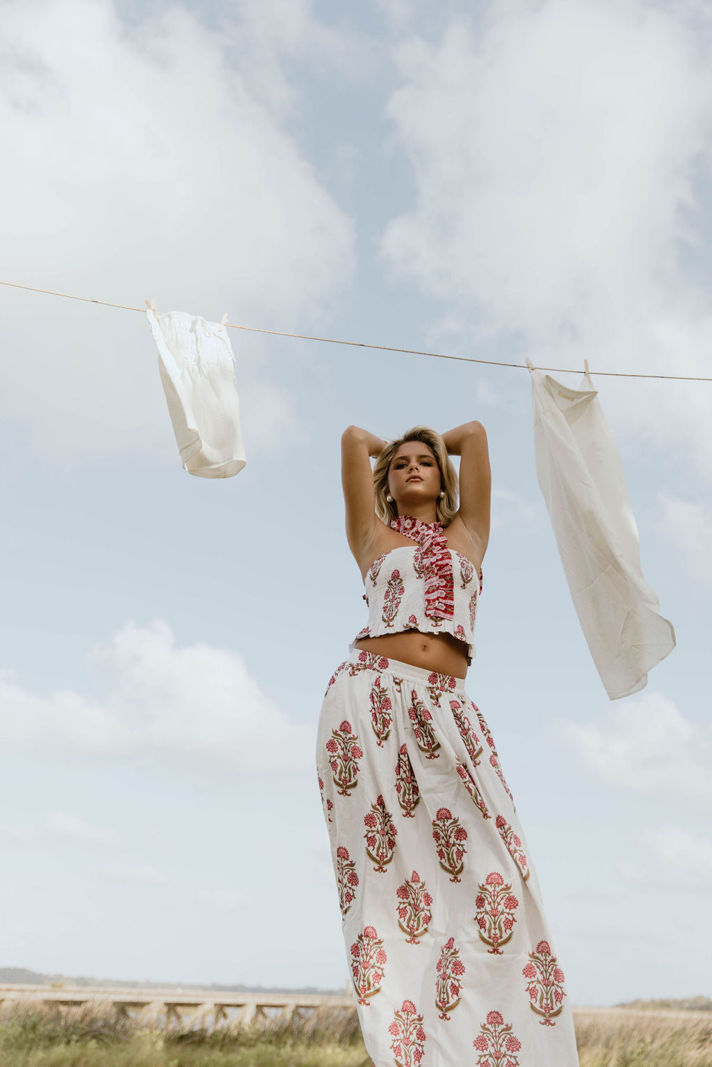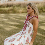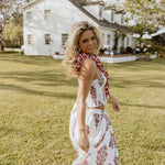 Riley Floral Ruffle Skirt Top Set - White/Red