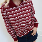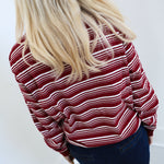 Riley Striped Polo Long Sleeve Top - Burgundy