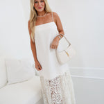 The Rosette Midi Dress in Ivory combines romance with refined elegance. Its flattering square neckline and delicate spaghetti straps create a timeless, minimalist shape. The relaxed fit offers comfort while the sheer rosette floral hem adds a romantic, textured detail. Perfect for bridal events or stylish cocktail parties, this dress delivers understated charm for anyone seeking a graceful and romantic style. Versatile and effortlessly chic, it’s an excellent choice for special occasions.