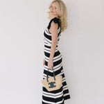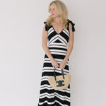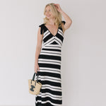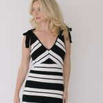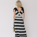 This cozy yet elegant Ruby Sweater Midi Dress combines comfort with style in a versatile black and off-white design. The sleeveless silhouette features charming tied straps that add a feminine touch, while the midi length offers flattering coverage. Perfect for transitional seasons, this dress can be easily layered for year-round wear and dressed up or down for any occasion.