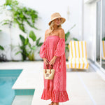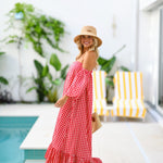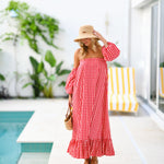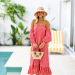 Rylie Strapless Bubble Sleeve Maxi Dress - Red Gingham