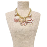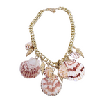 This stylish Seashell Charm Necklace features adjustable length and a glossy, gold-tone design. Adorned with large seashell charms, it's perfect for adding a touch of coastal charm to any outfit. The secure lobster claw clasp ensures it stays in place all day long.