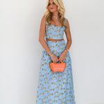 Sienna Maxi Skirt Set - Baby Blue Tiger
