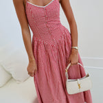 Skylar Front Button Maxi Dress - Red Checke