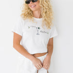 This charming tee features a delicate martini embroidery on the front, adding a touch of playful sophistication to your casual wardrobe. The off-white color provides a versatile backdrop for the tiny cocktail design, making it perfect for both day outings and evening gatherings. You'll love how this comfortable shirt effortlessly elevates your everyday style.