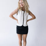 Dress to impress with our Tori Mini Skirt in Black Denim. Made with a slim fit and unfinished hemline, this skirt exudes a casual yet chic vibe. Perfect for any occasion, it's a versatile piece that will elevate your style. Say goodbye to boring bottoms and hello to effortless fashion.