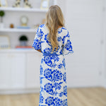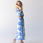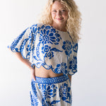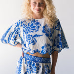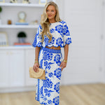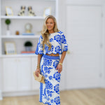 Veronica Linen Floral Skirt Set-Off White/Blue