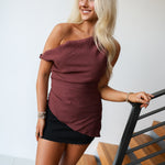 Victoria Asymetrical Off Shoulder Ruched Top - Maroon