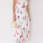 This sleeveless midi dress features vibrant multi-colored prints that brighten any occasion. The comfortable strap design offers both support and elegance, while the versatile length transitions effortlessly from day to evening wear. Perfect for expressing your unique style with confidence.