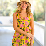 This dress is designed with a flattering v neck and fits true to size for a comfortable and confident look. Perfect for any warm weather occasion, this dress will be your go-to all season long.