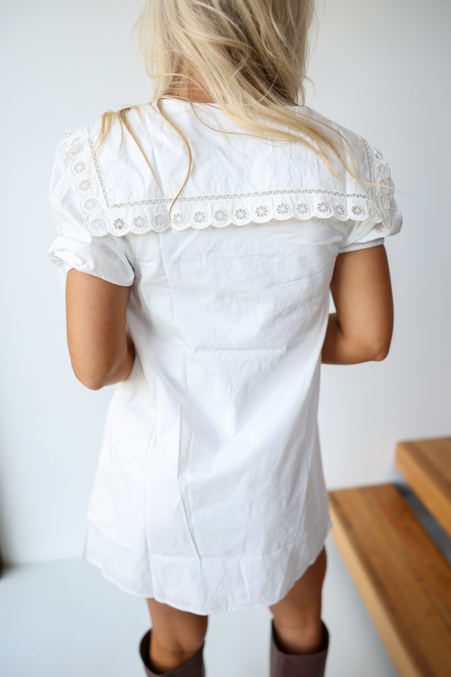 Claire Collar Puff Sleeve Mini Dress - Off White