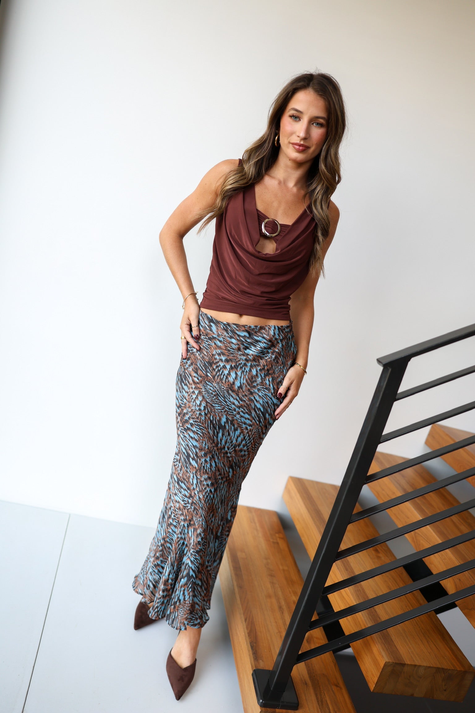 Amy Scarf Bubble Skirt Set - Blue/Green Blockprint