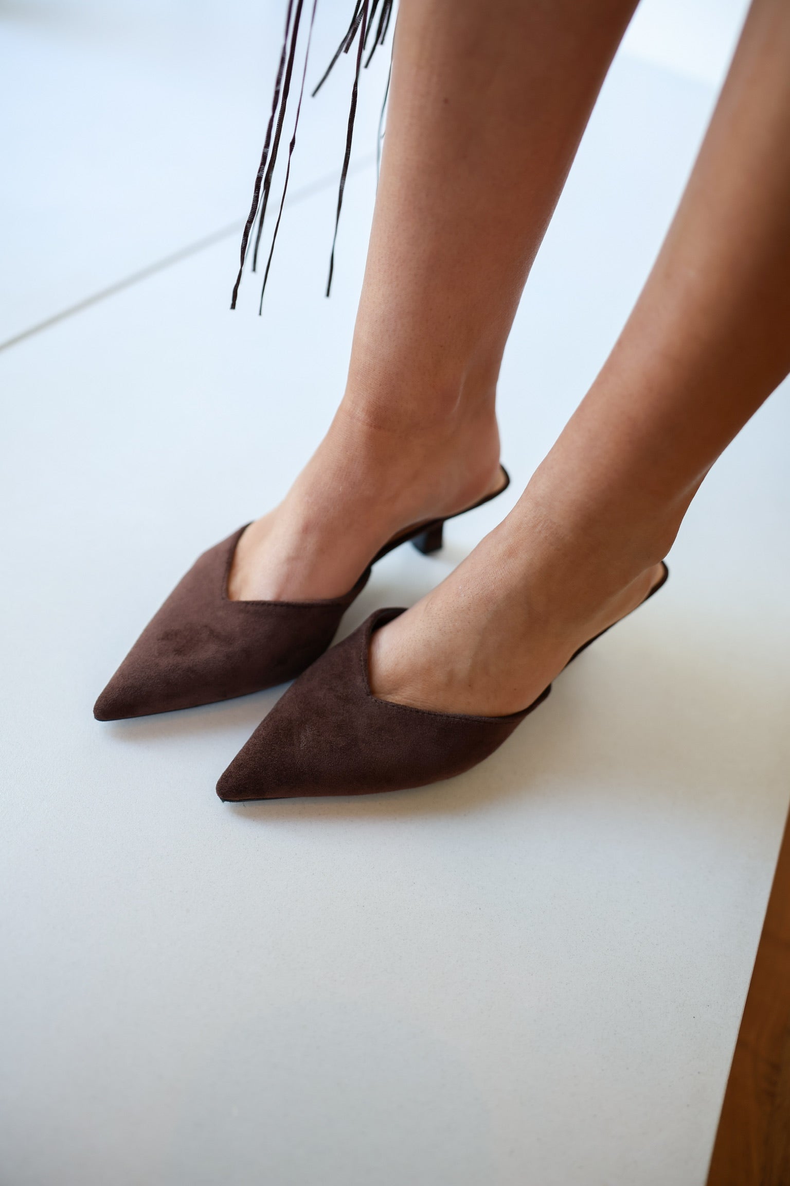 Morley Faux Suede Pointed Toe Mul Kitten Heels - Brown