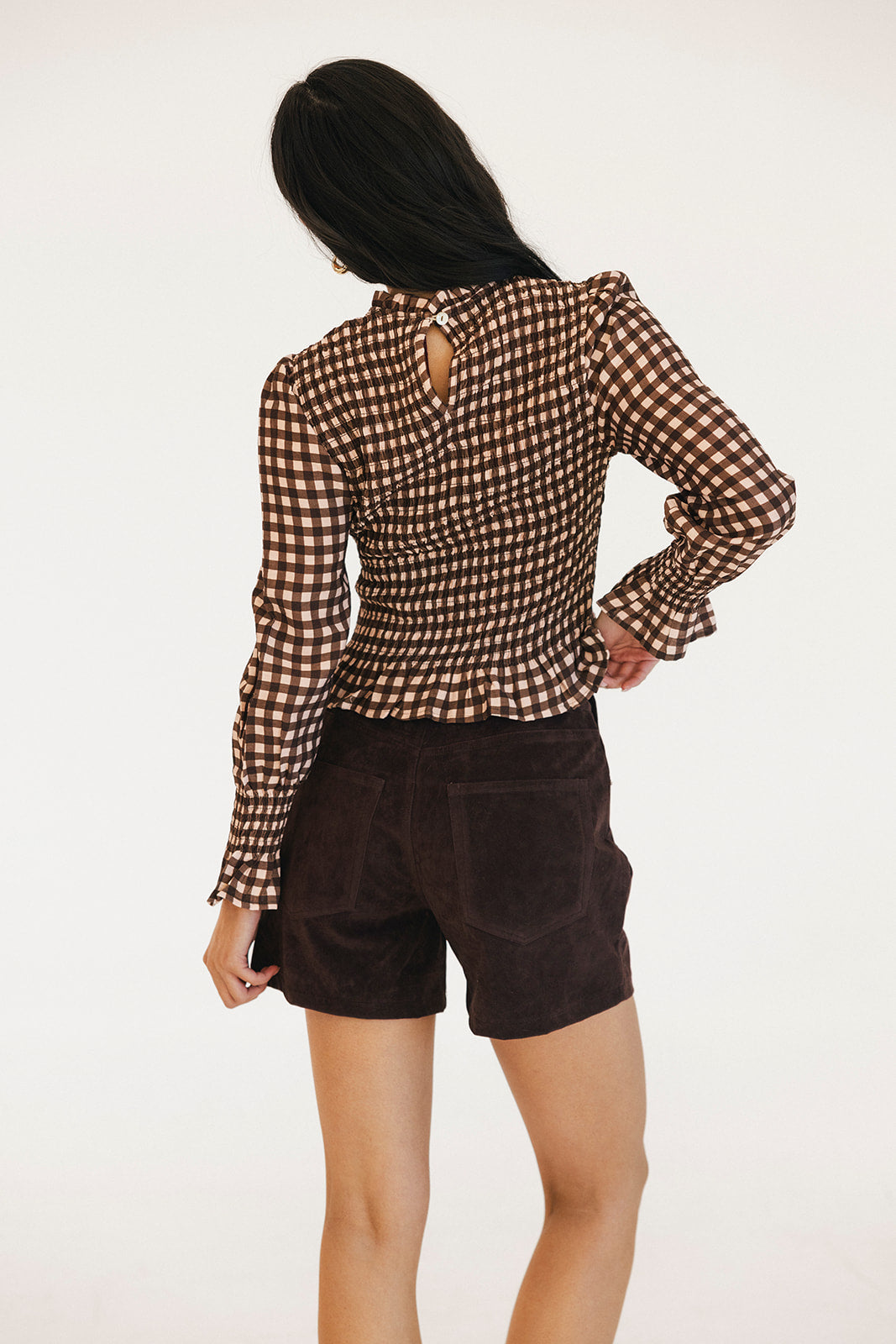 Elevate your everyday wardrobe with these luxurious faux suede shorts featuring a flattering high-rise silhouette. The rich burgundy hue pairs beautifully with your favorite knits and blouses for effortless sophistication. Designed with practical details including belt loops, functional pockets, and a secure button-zip closure, these shorts offer both style and comfort. Perfect for creating polished, versatile looks that transition seamlessly from day to night.