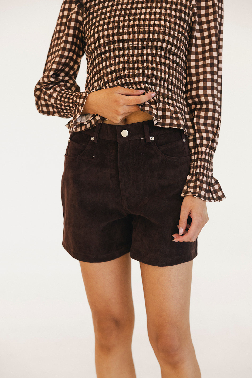 Alis Suede High-Rise Shorts - Brown