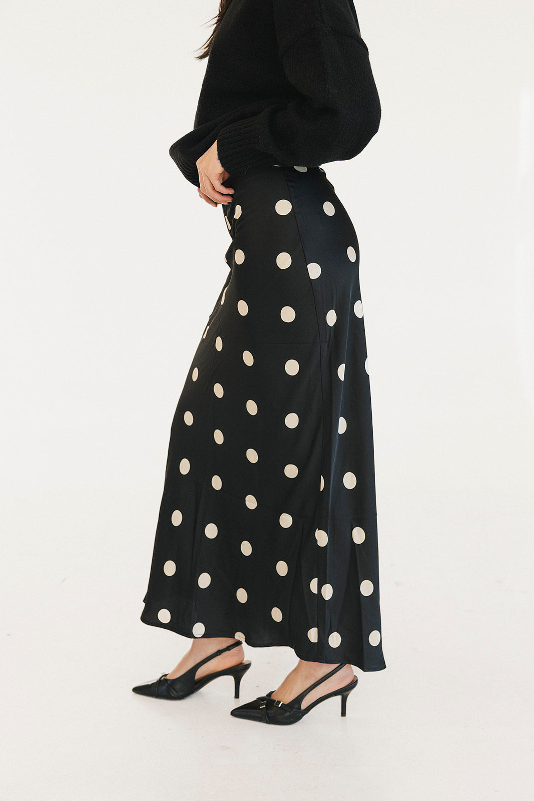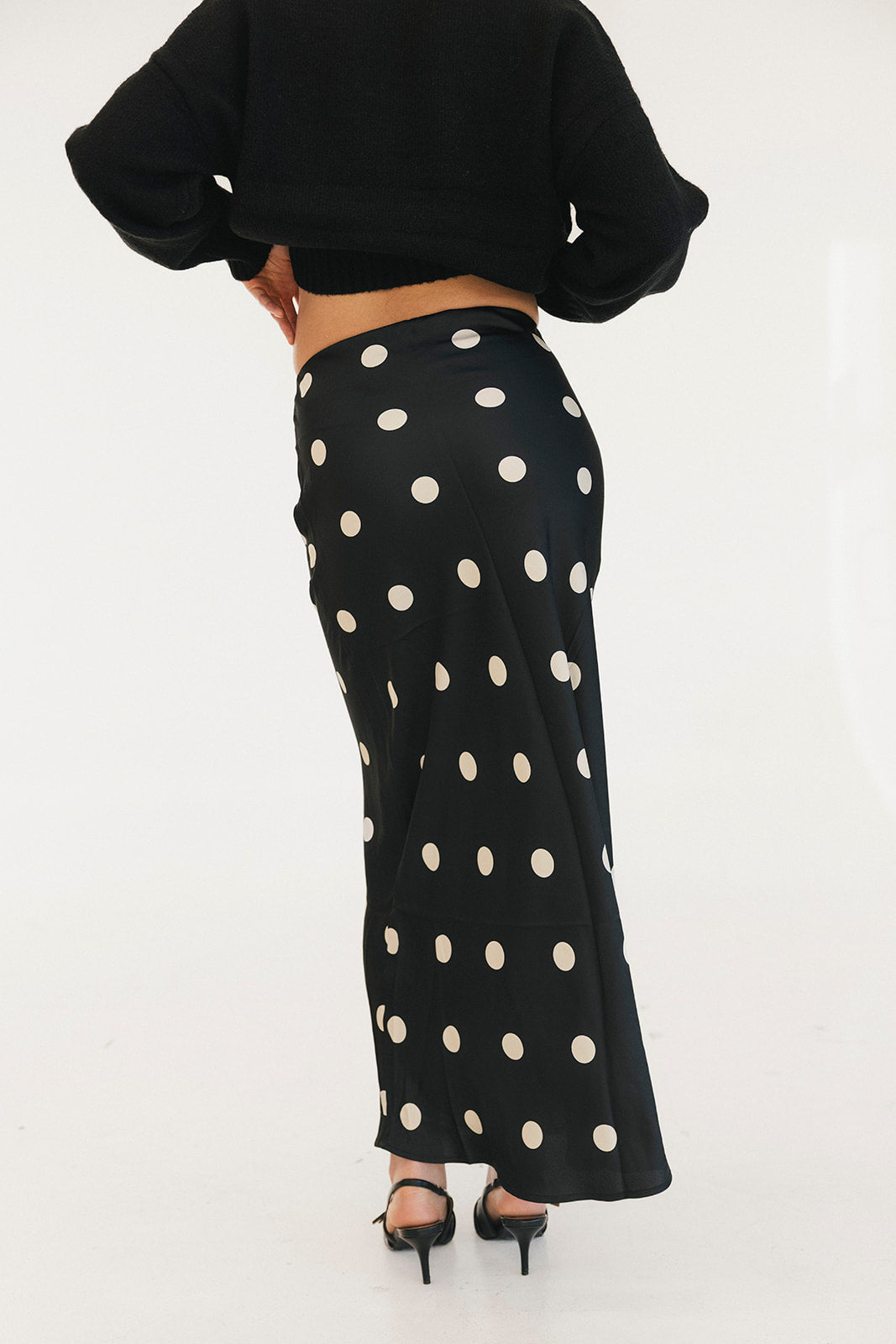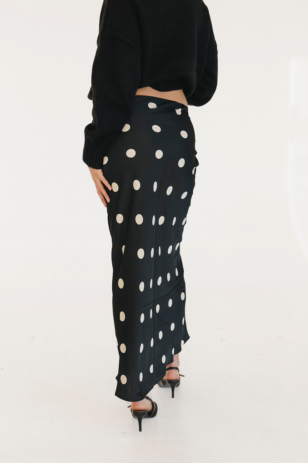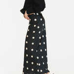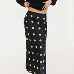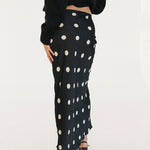 Casey Satin Midi Skirt - Black/Cream Polka Dot