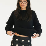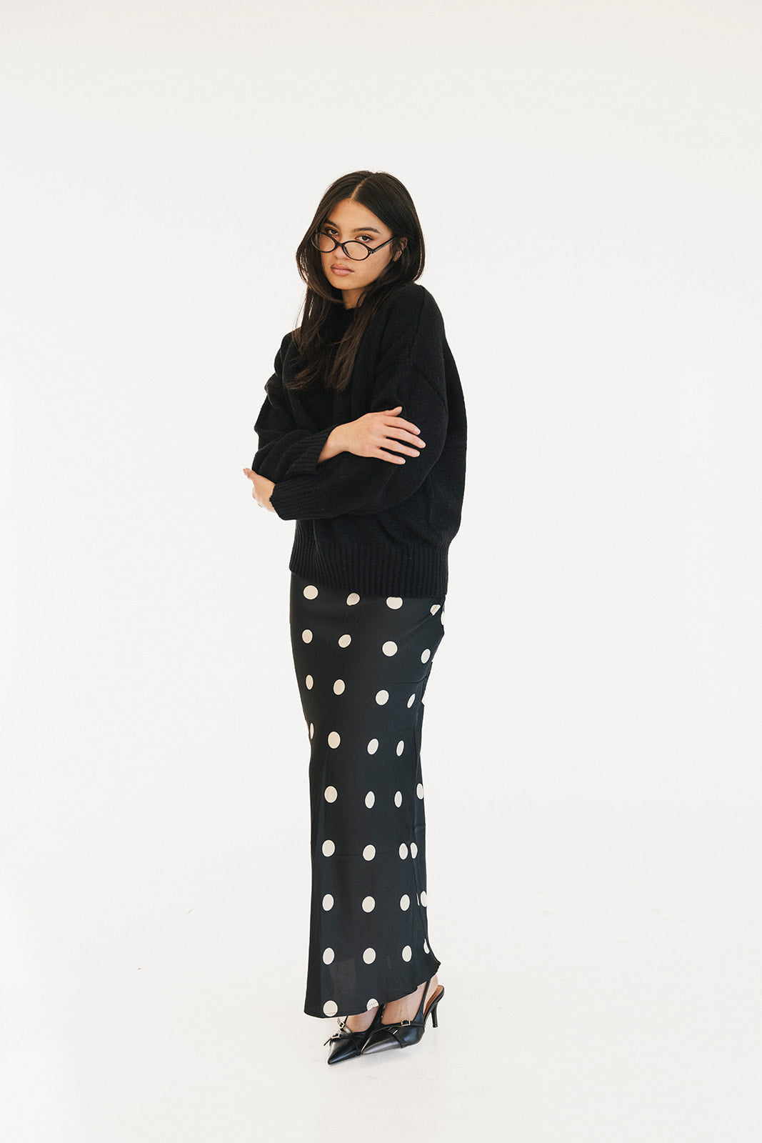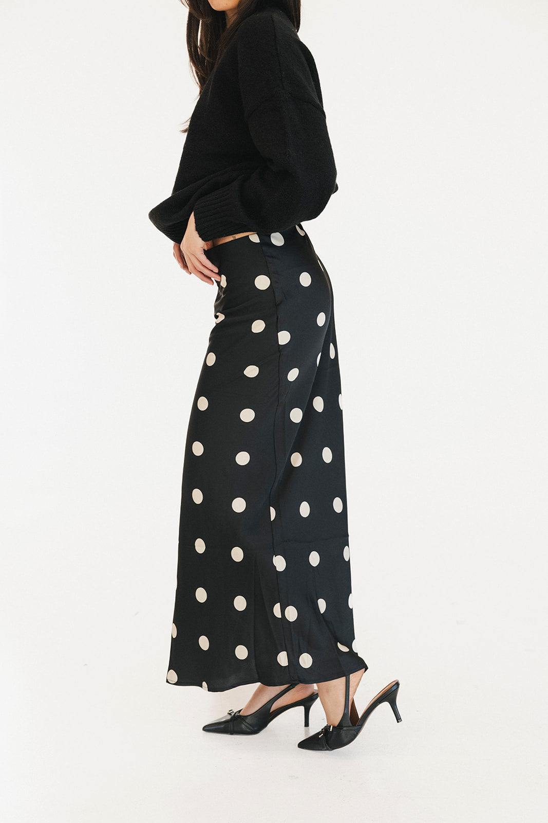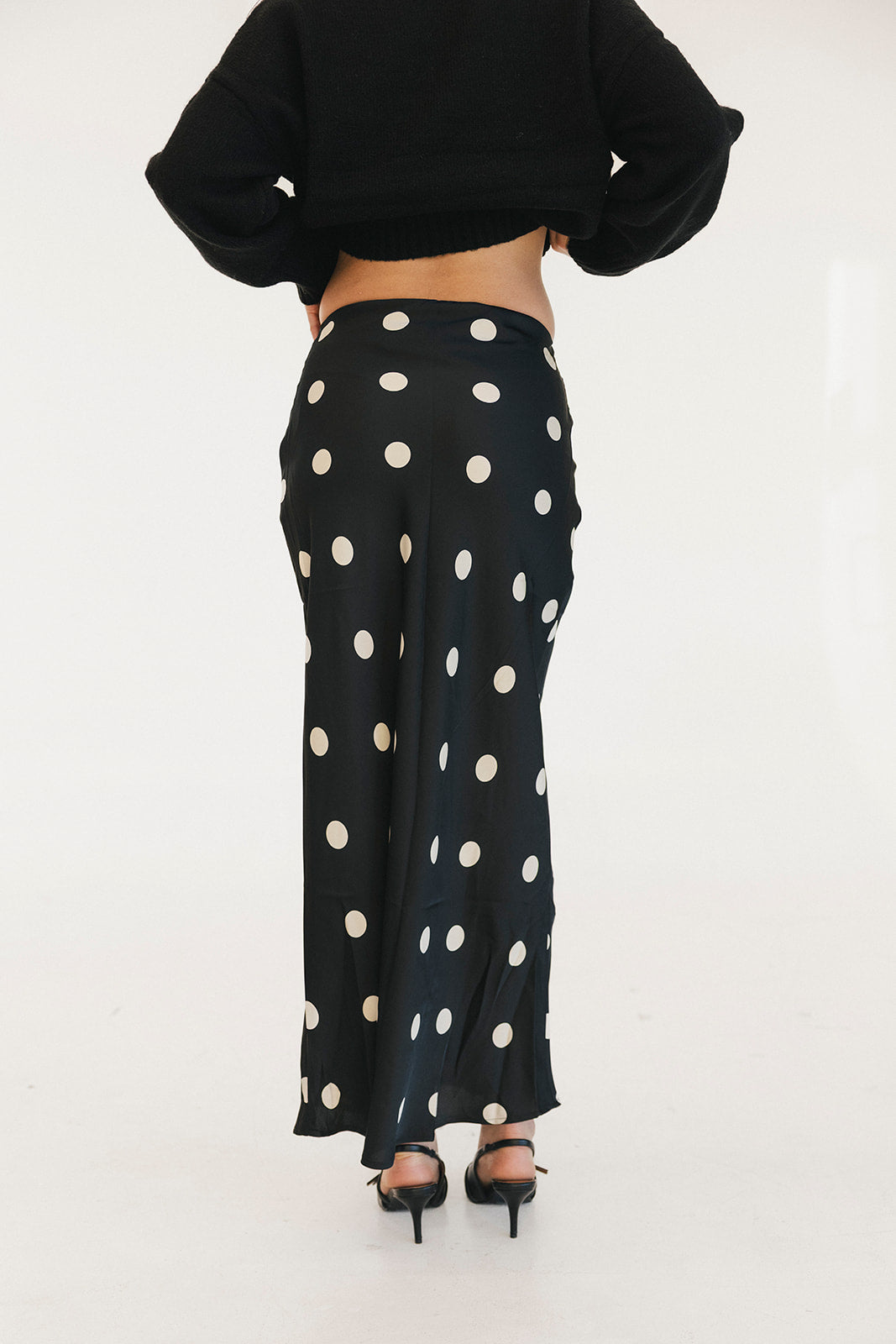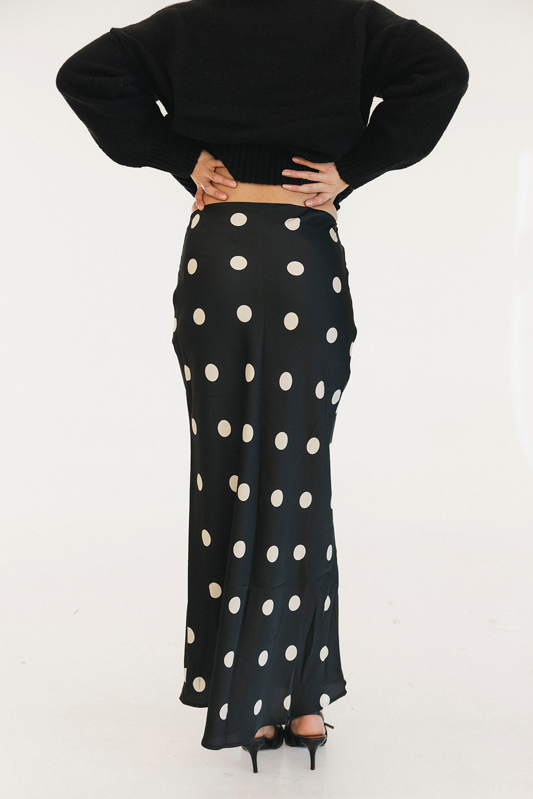 Casey Satin Midi Skirt - Black/Cream Polka Dot