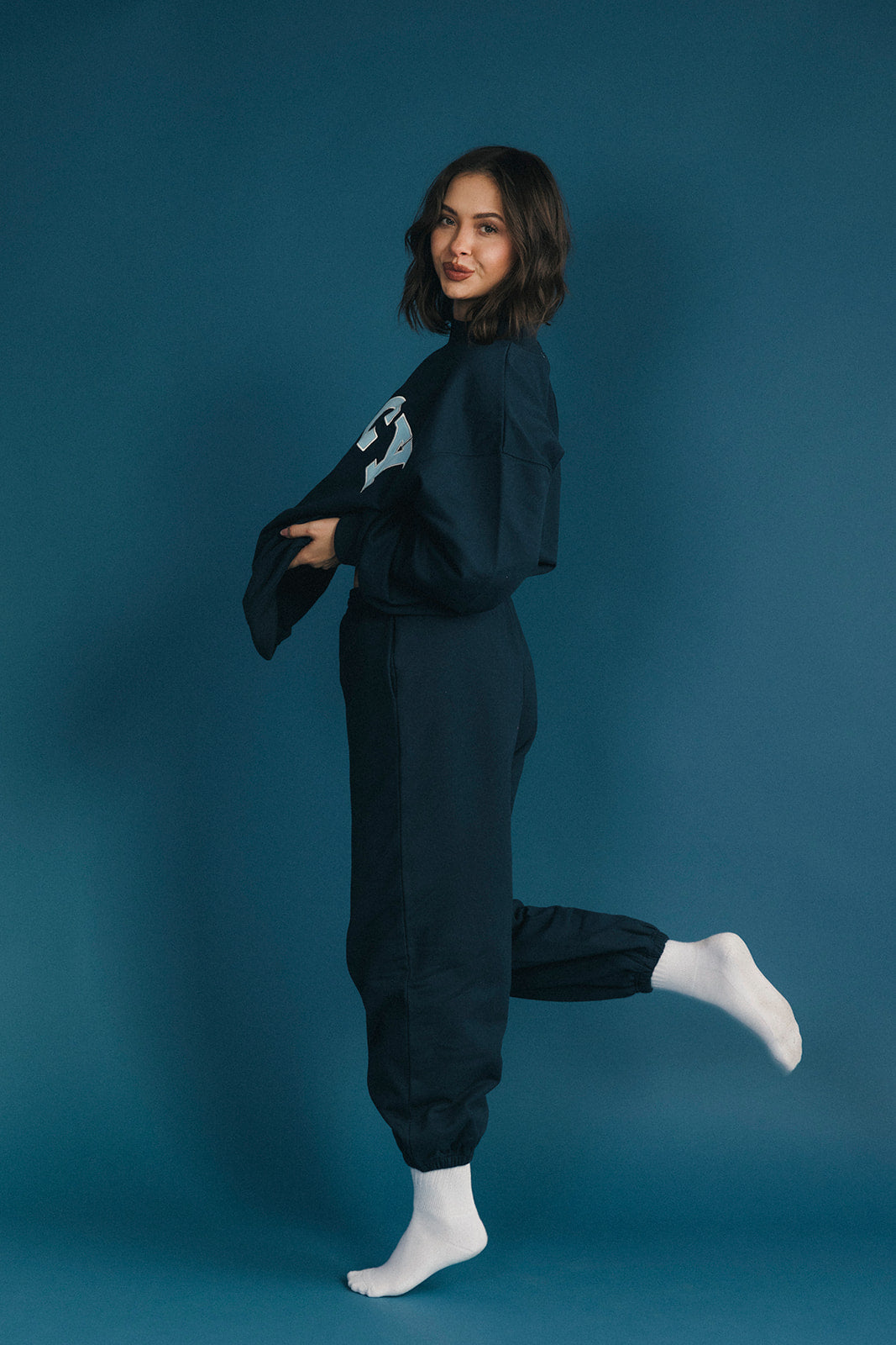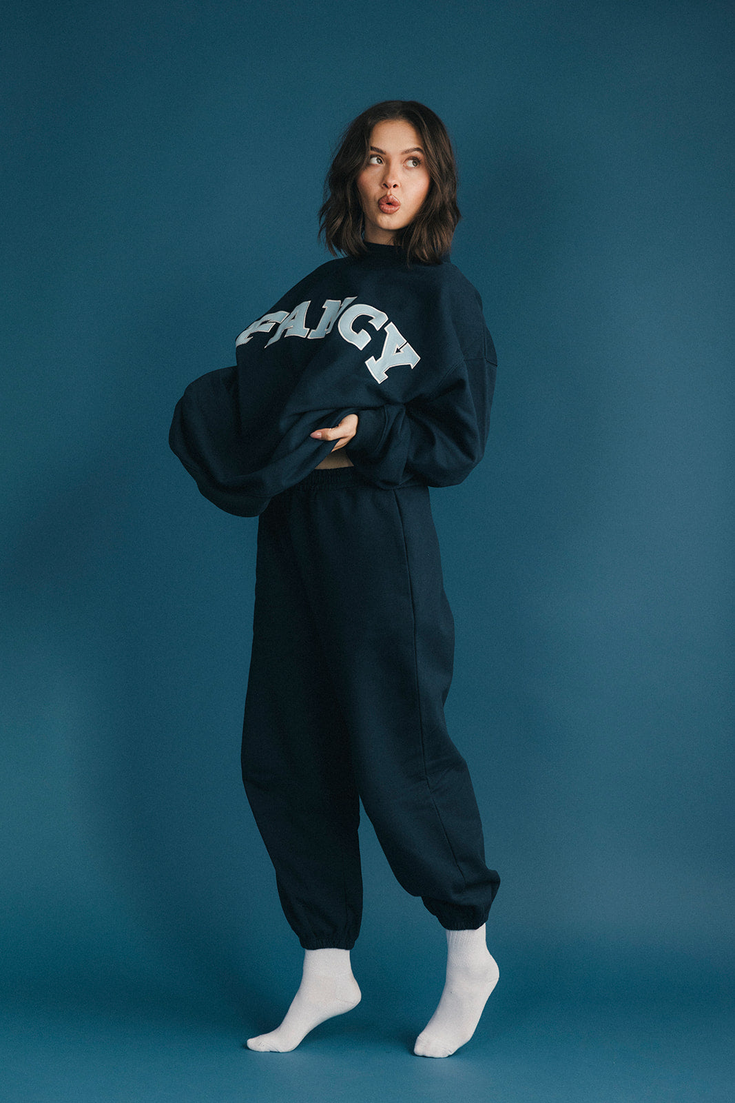 Fancy Fleece Cuffed Leg Sweatpants - Sapphire Navy