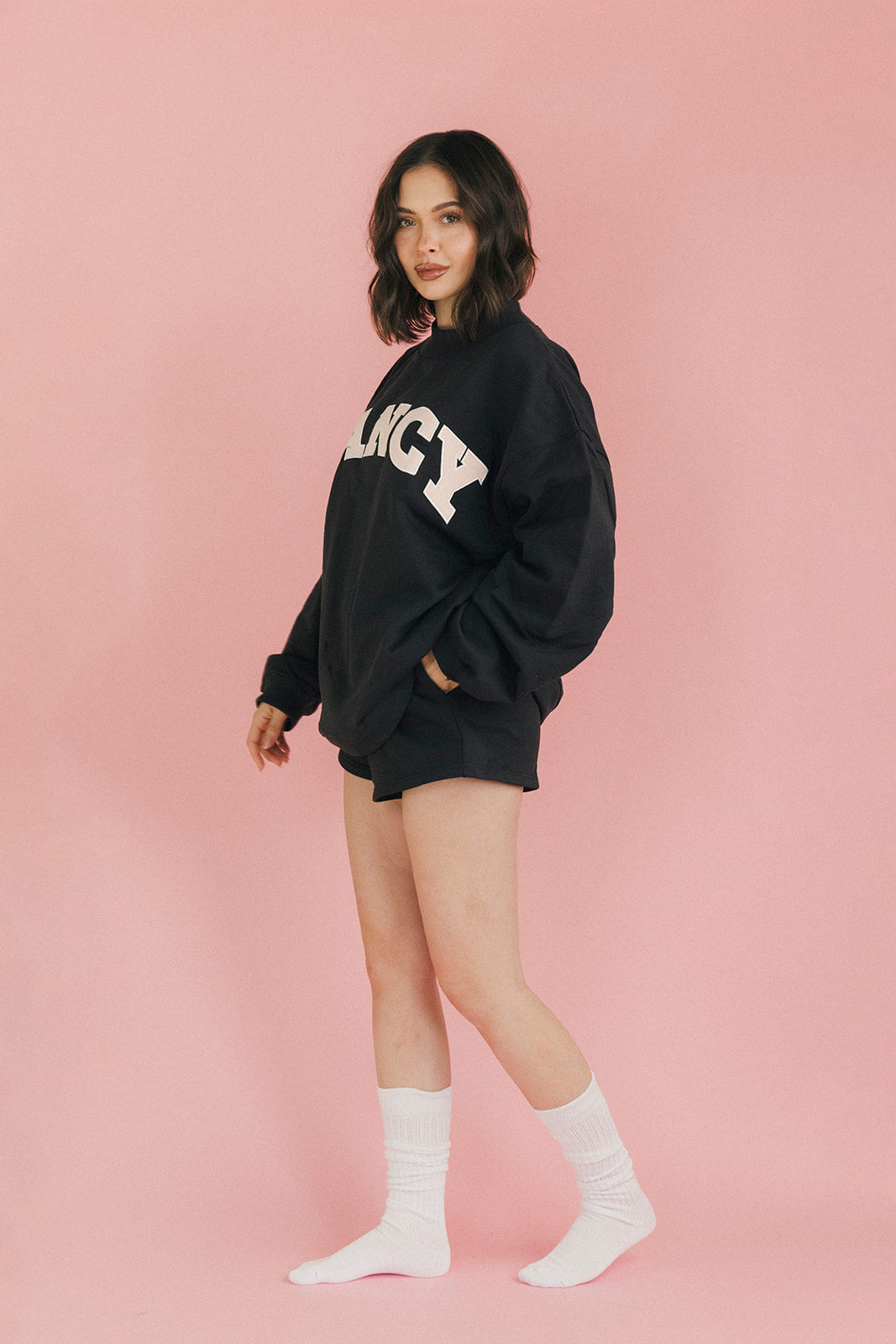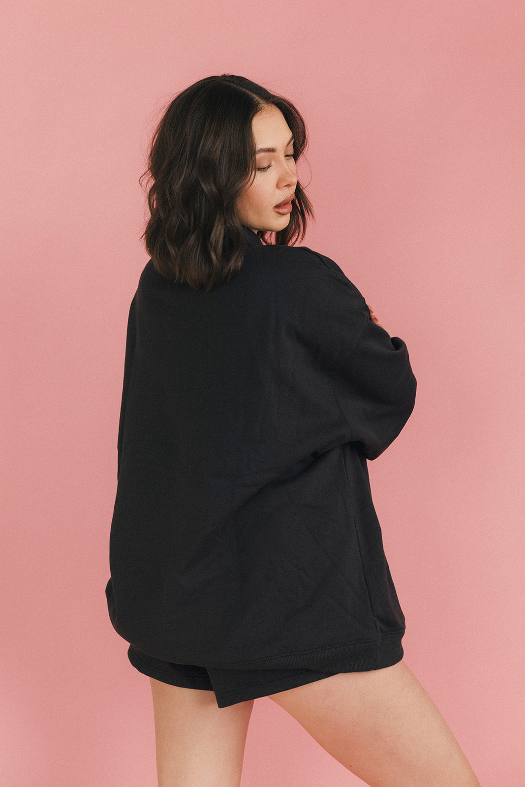 Model is wearing a XS/S mockneck and XS/S shorts.