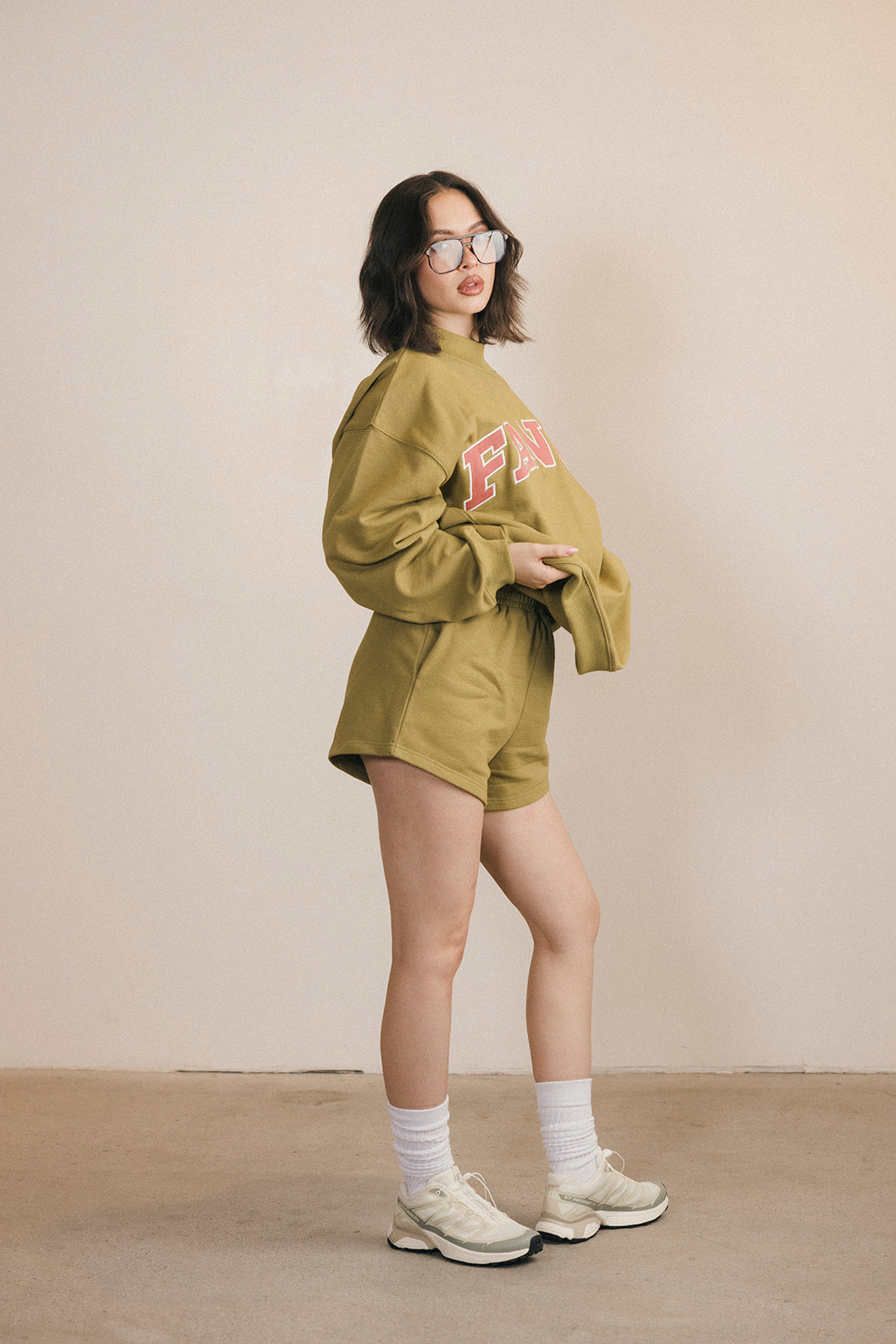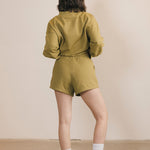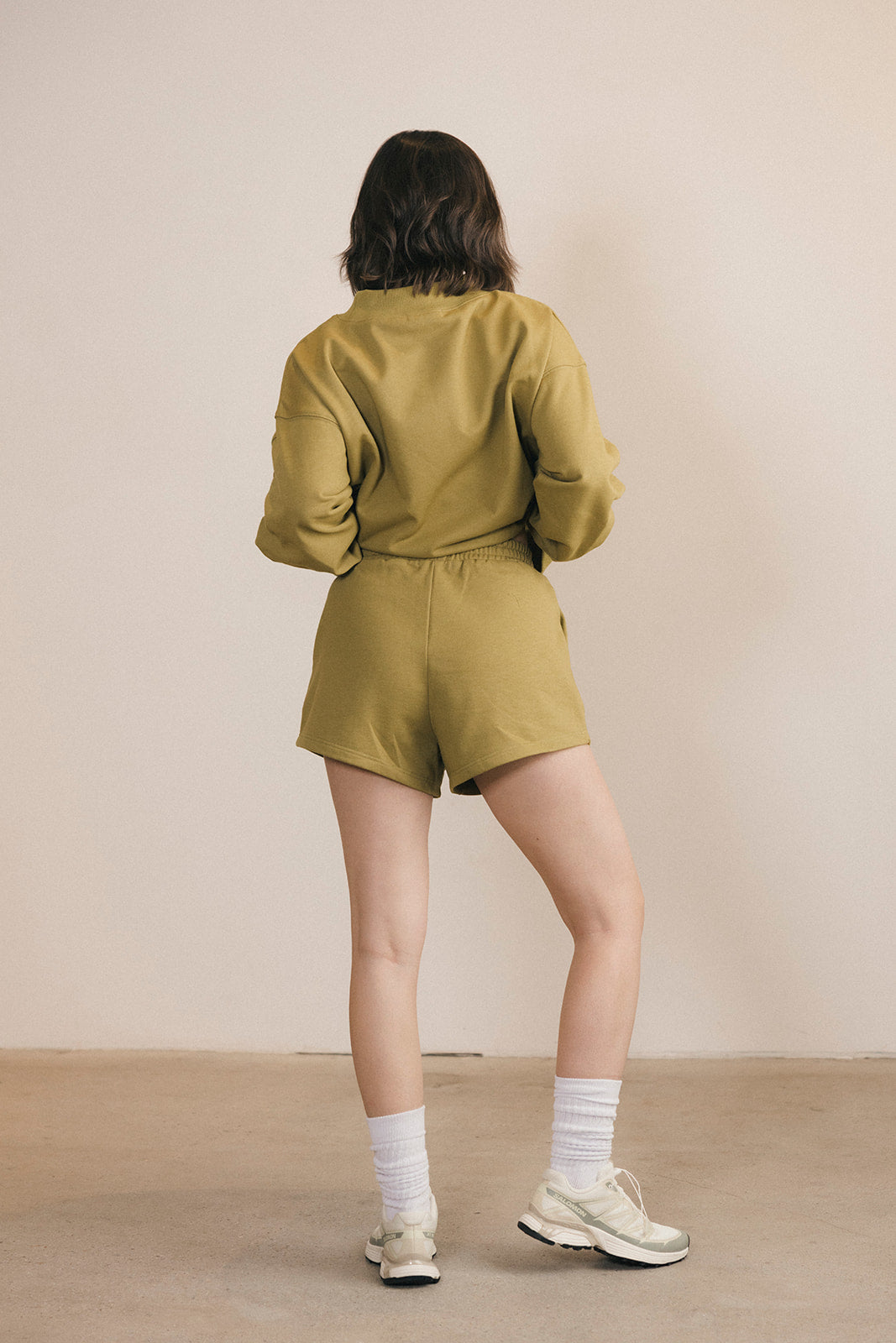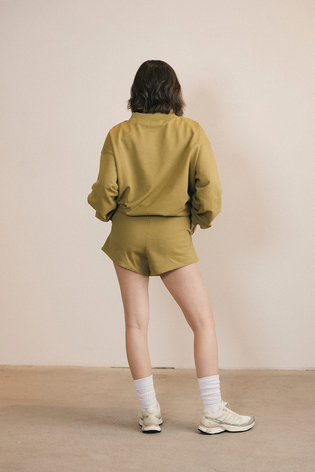 Model is wearing a XS/S mockneck and XS/S shorts.