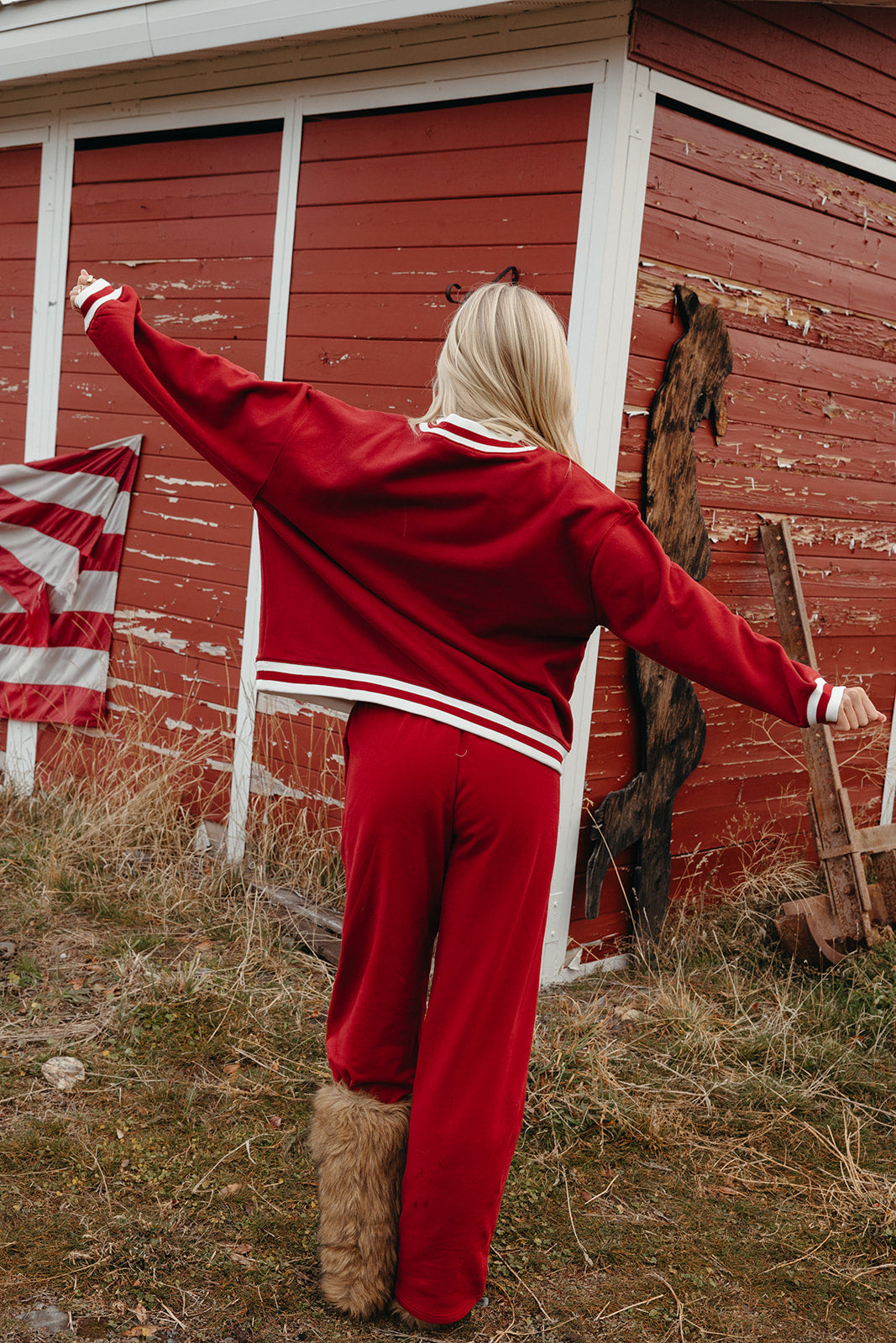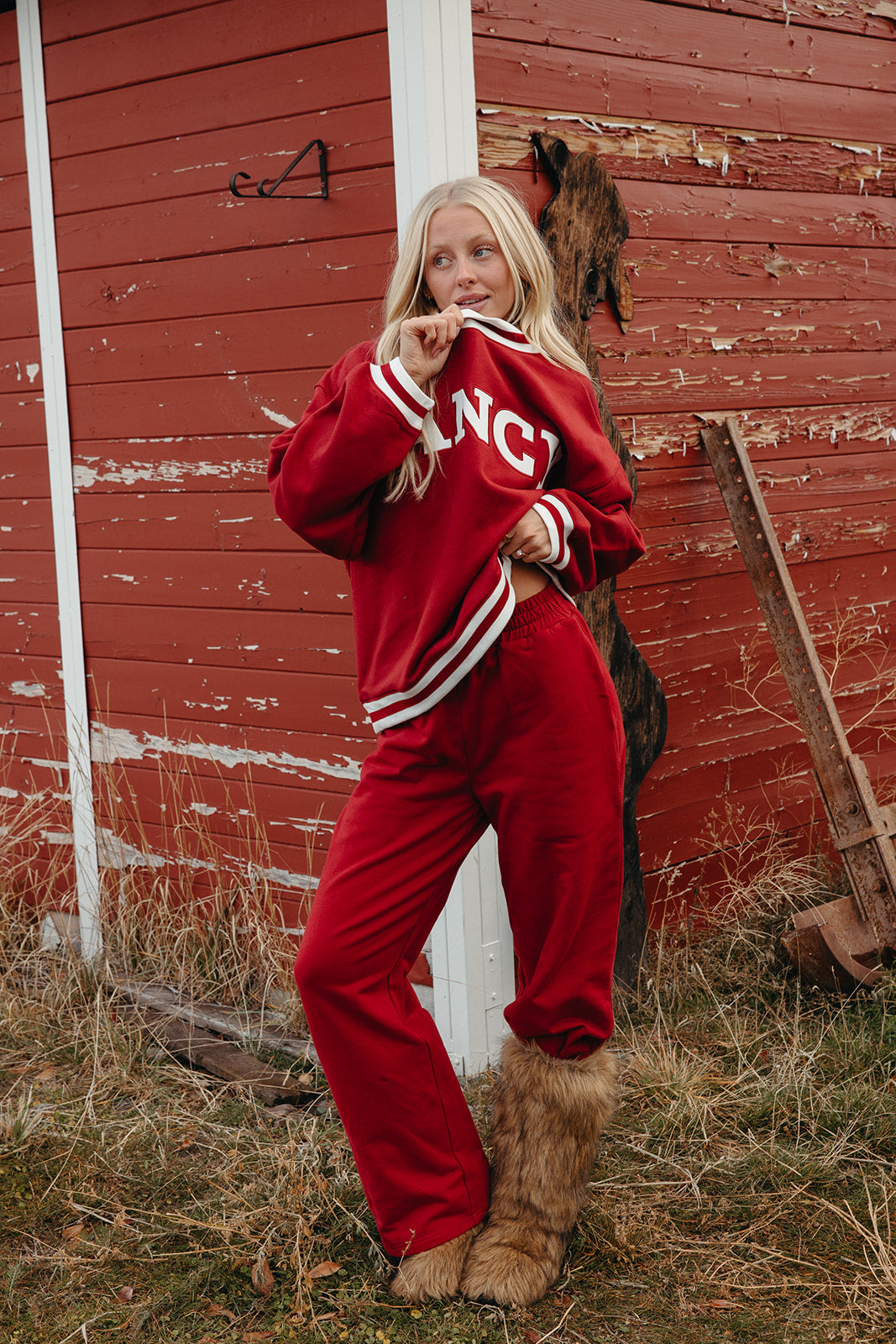 Model is wearing a XS/S mockneck and XS/S pants.