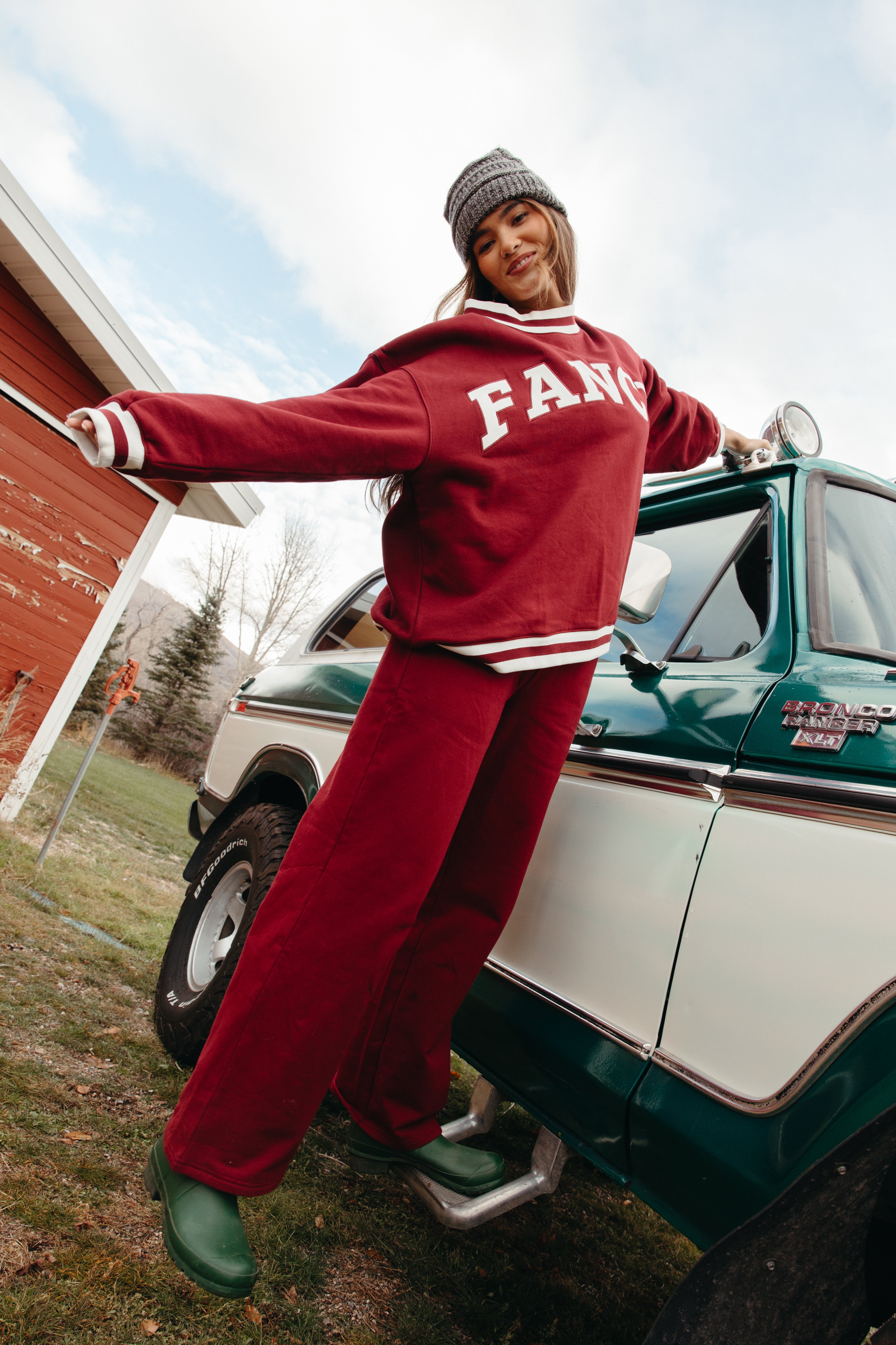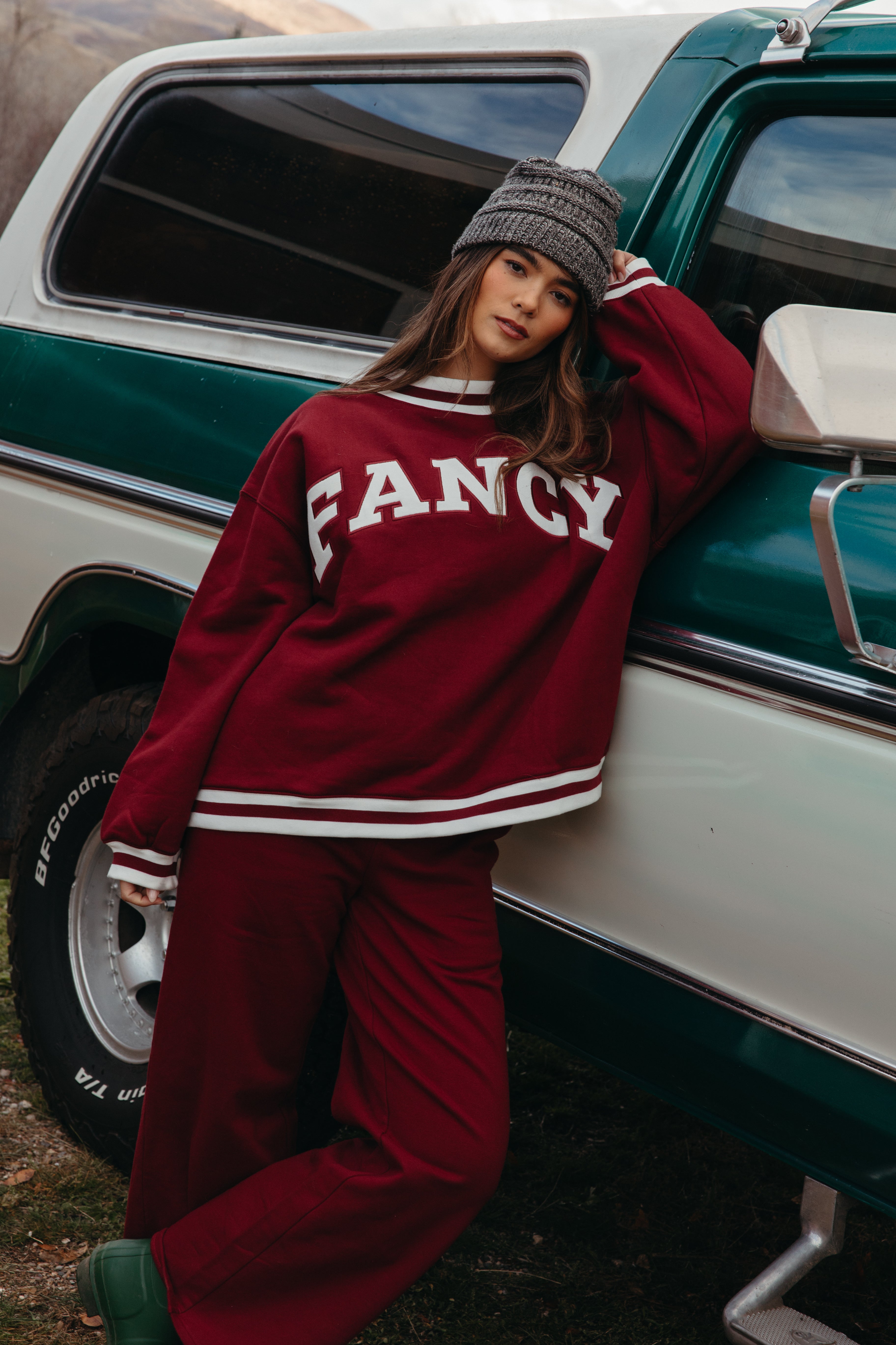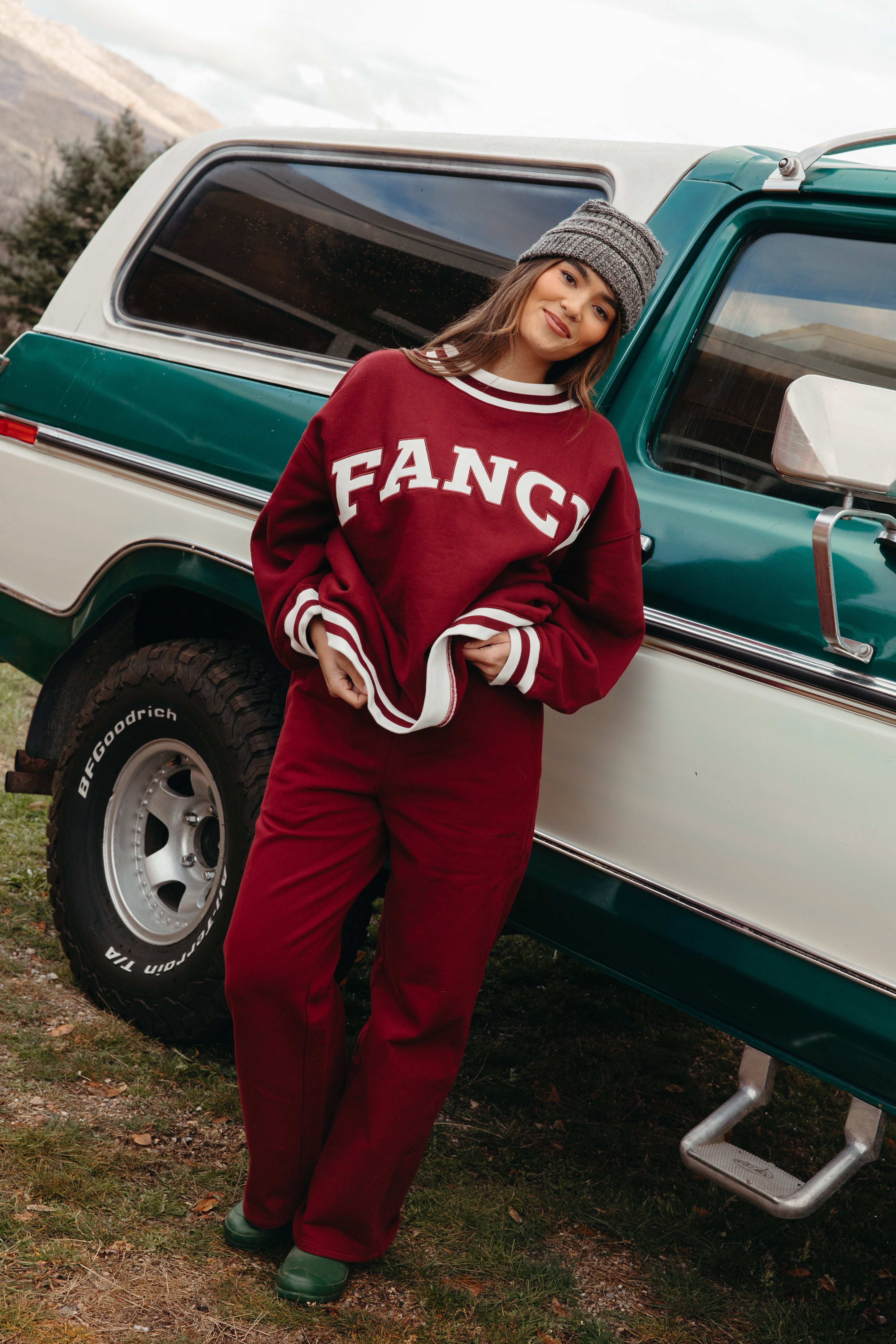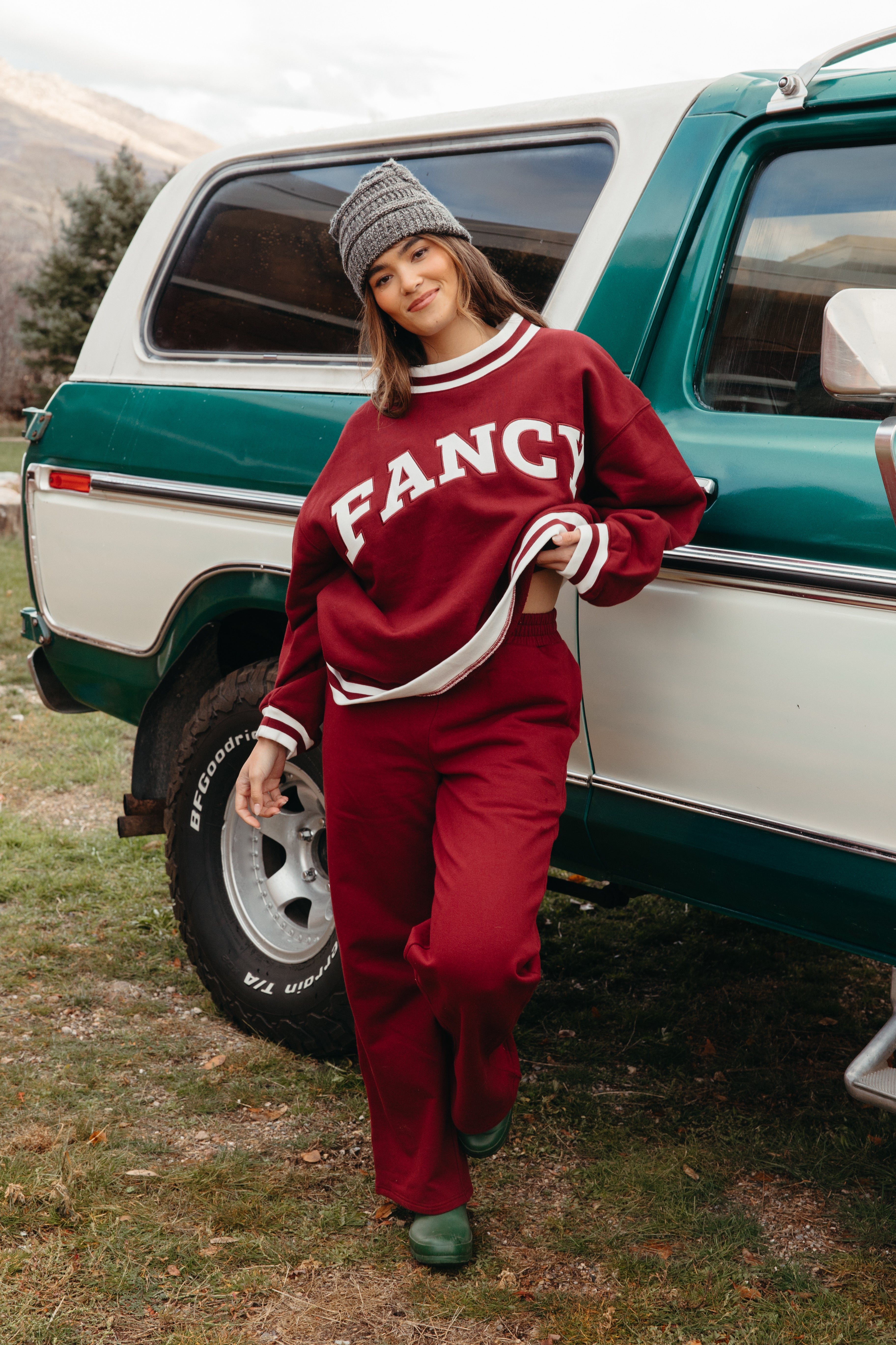 Fancy Fleece Wide Leg Sweatpants - Rich Burgundy