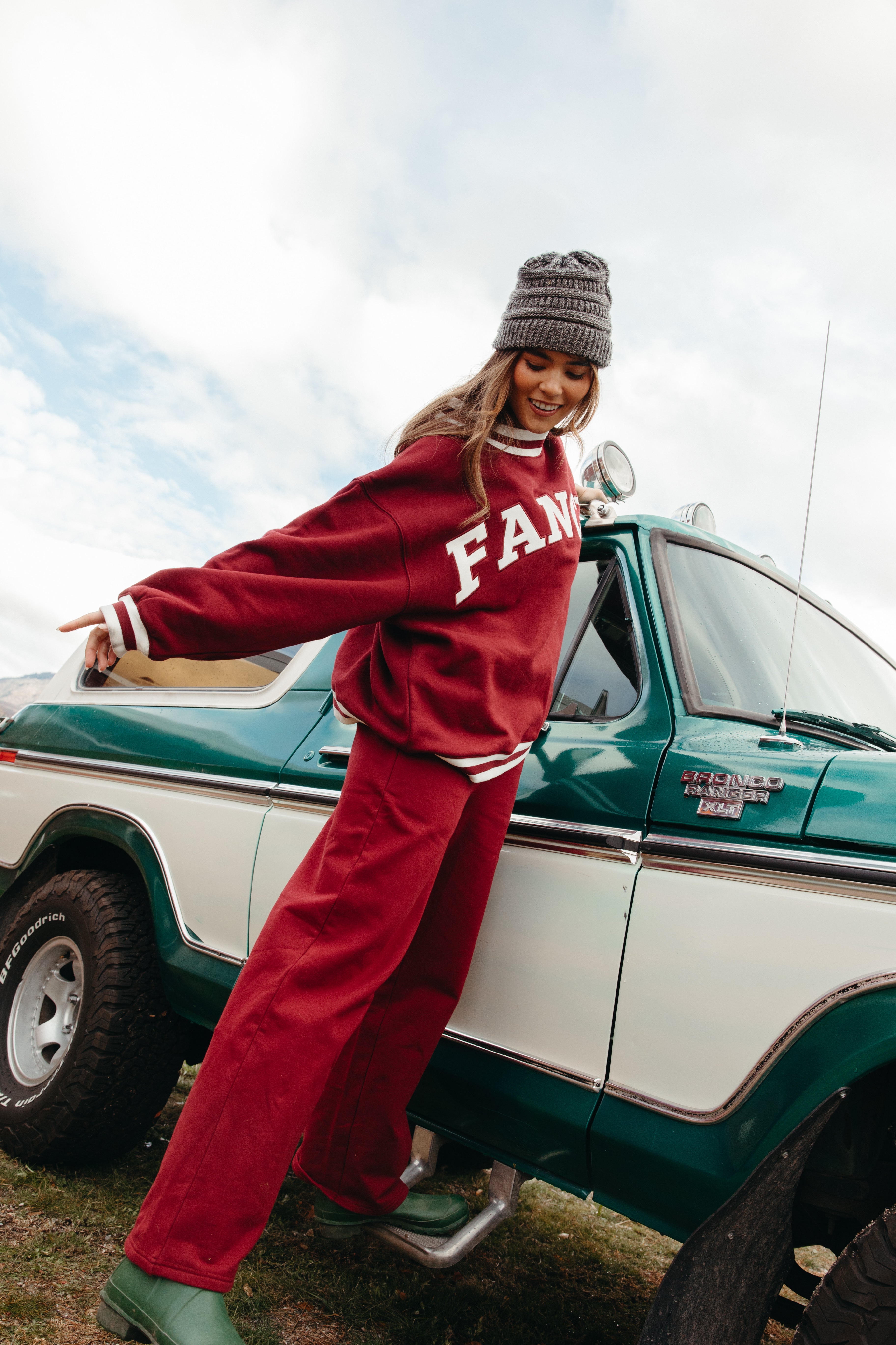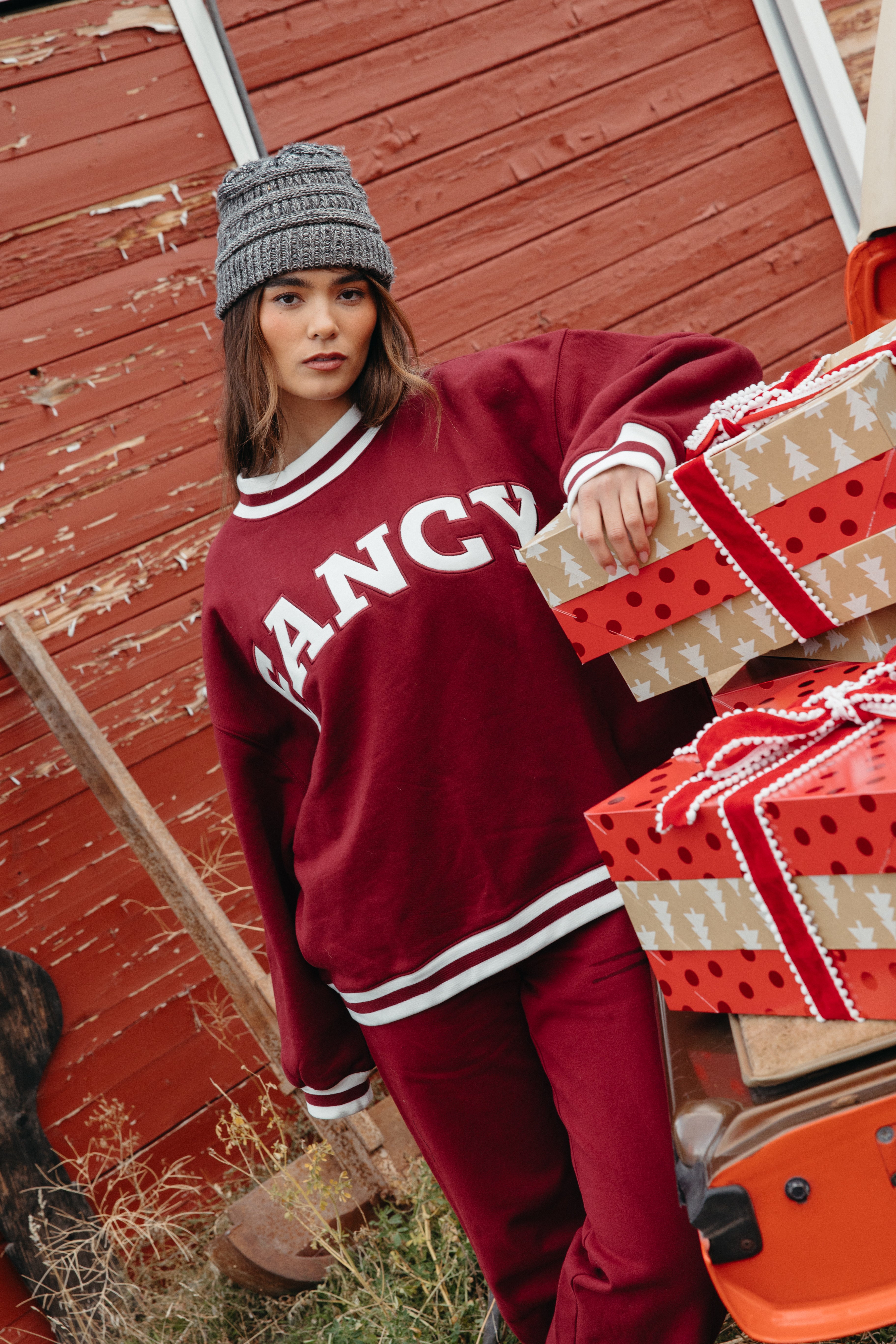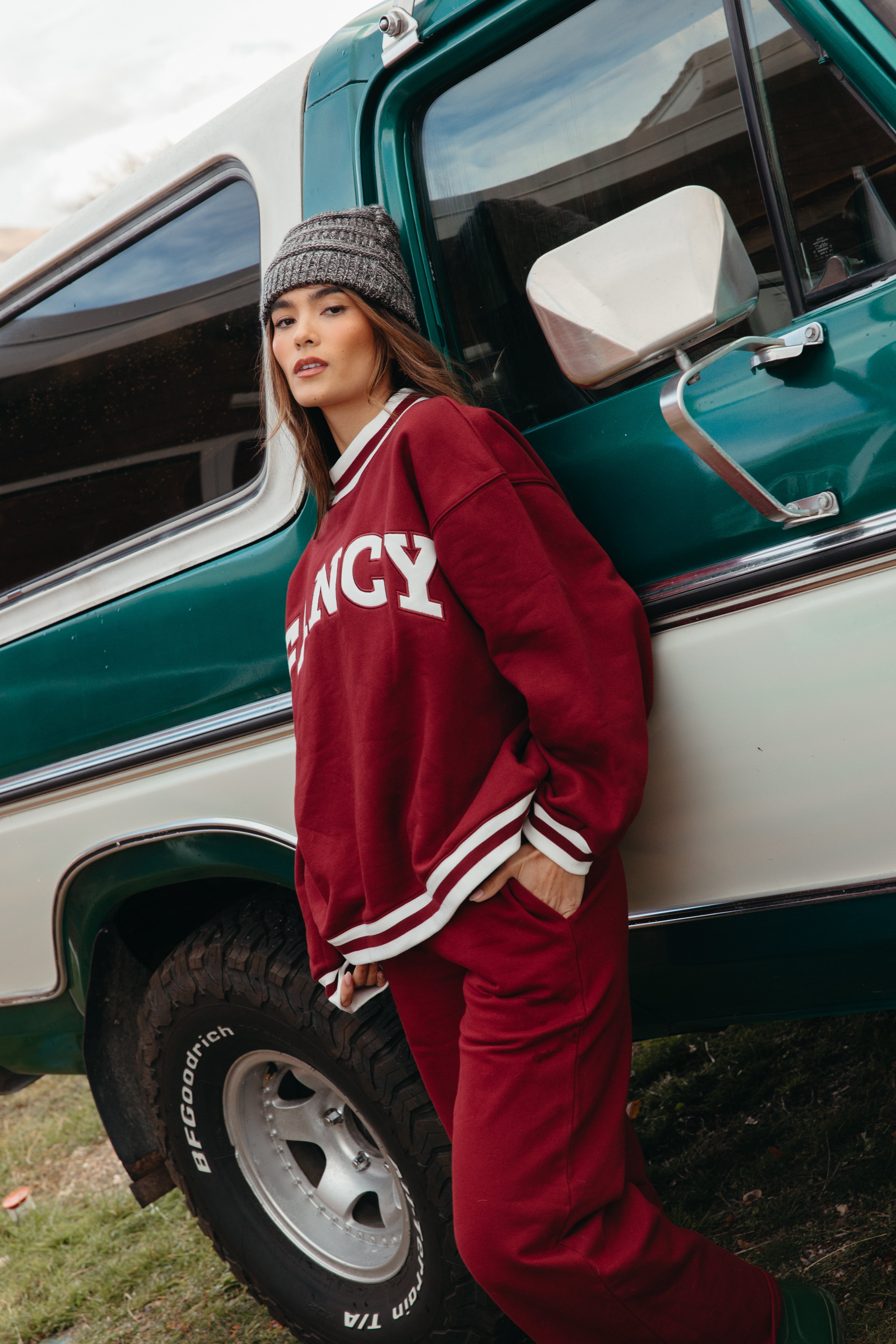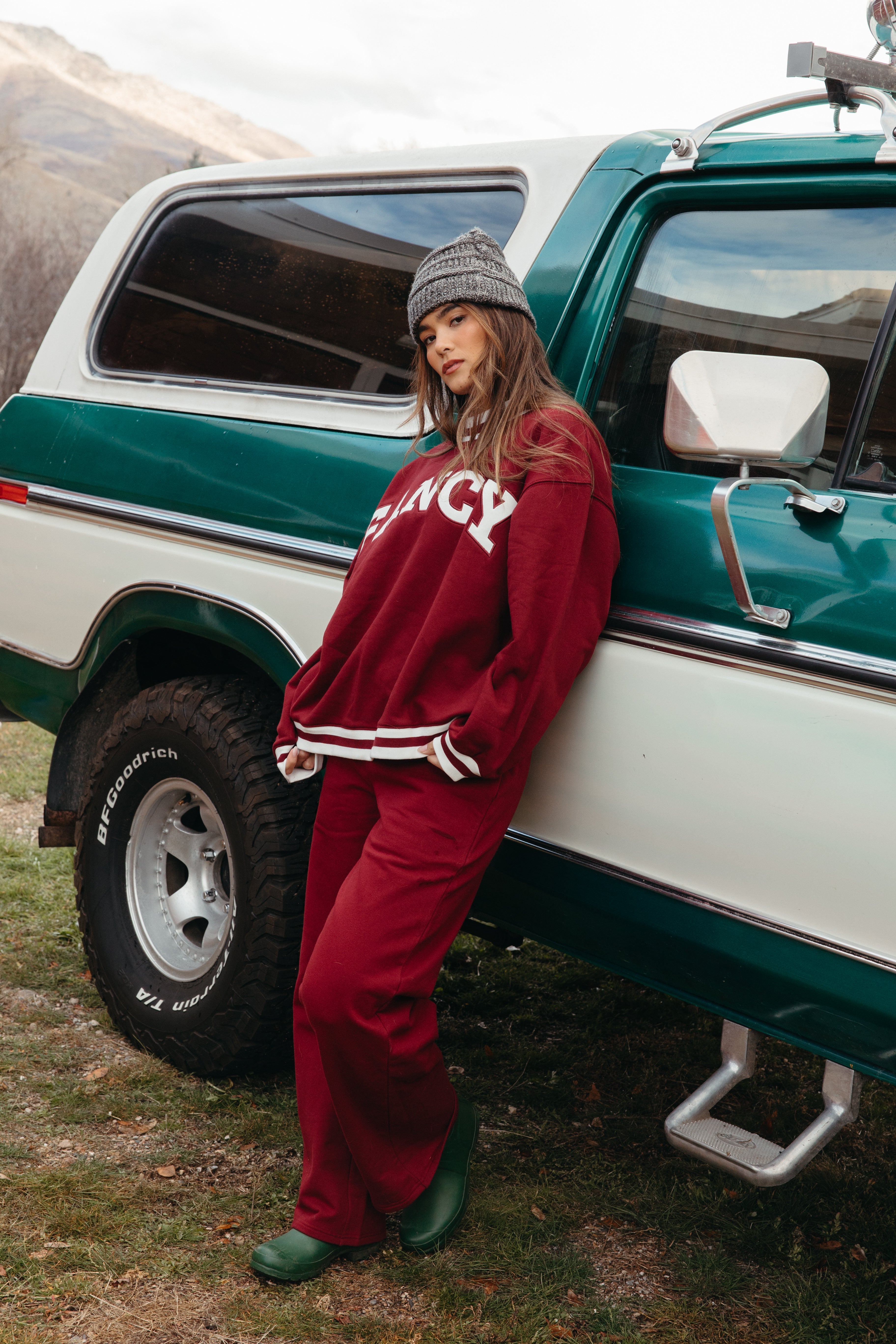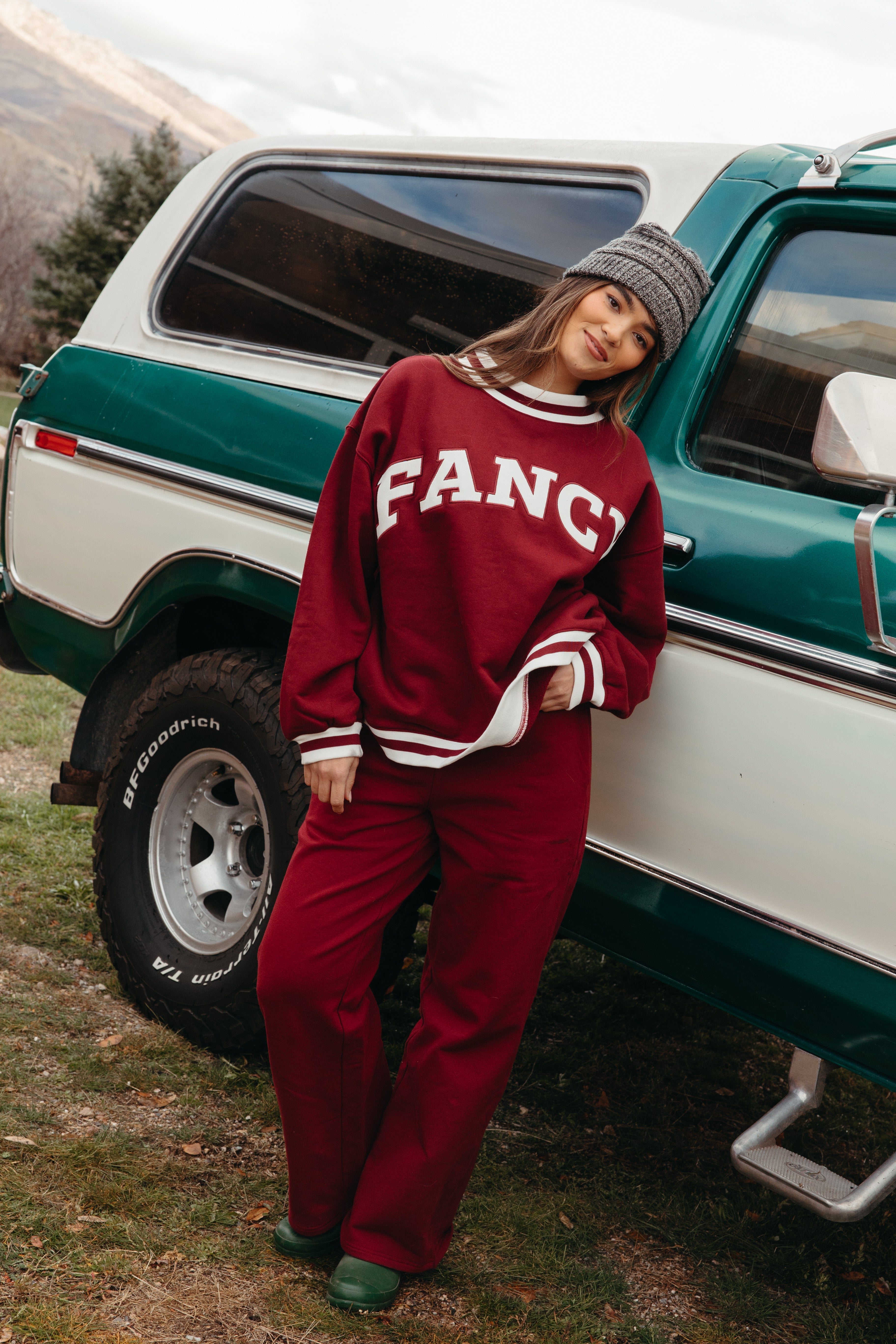 Fancy Fleece Wide Leg Sweatpants - Rich Burgundy