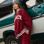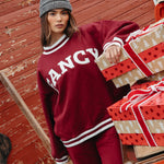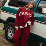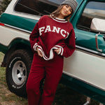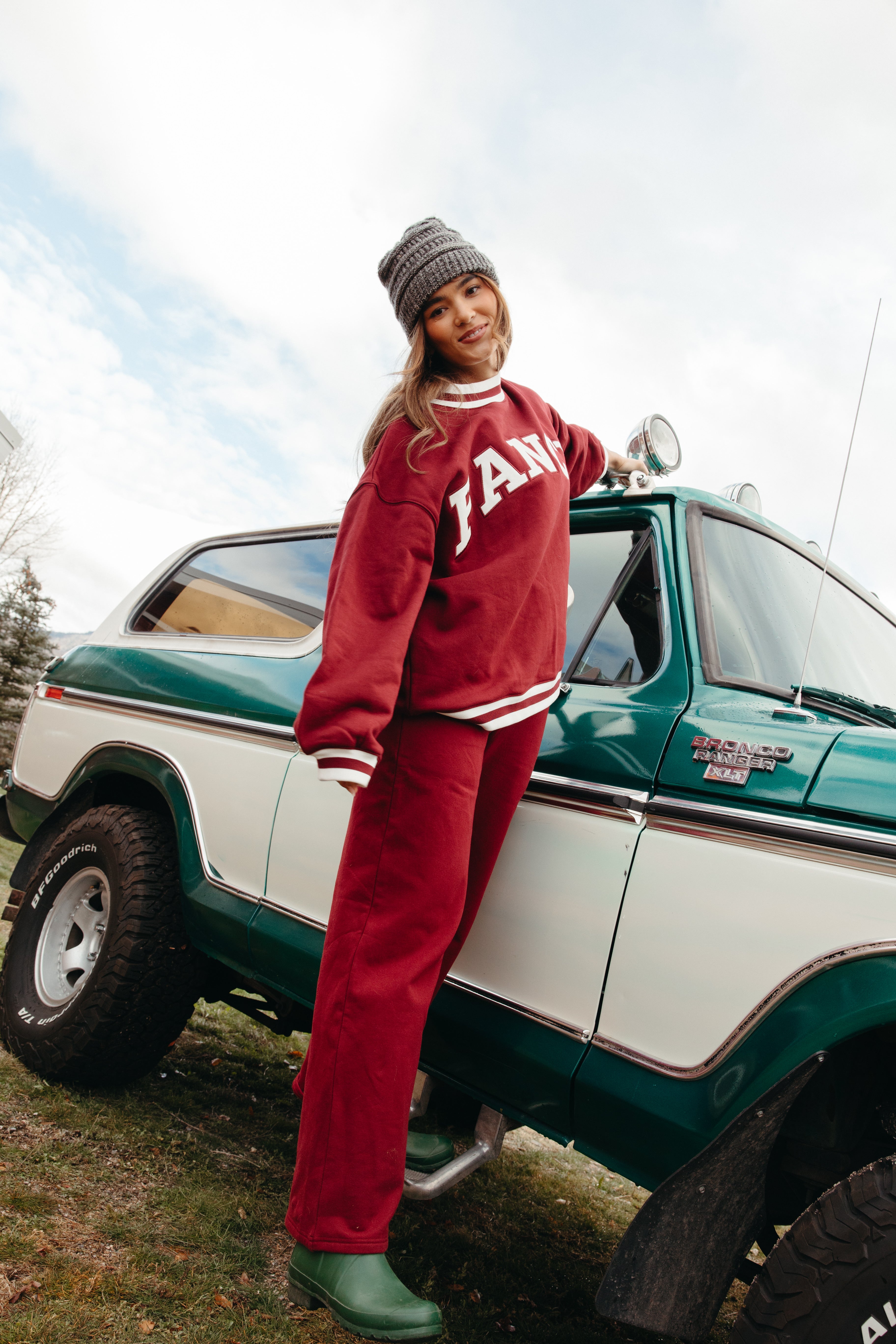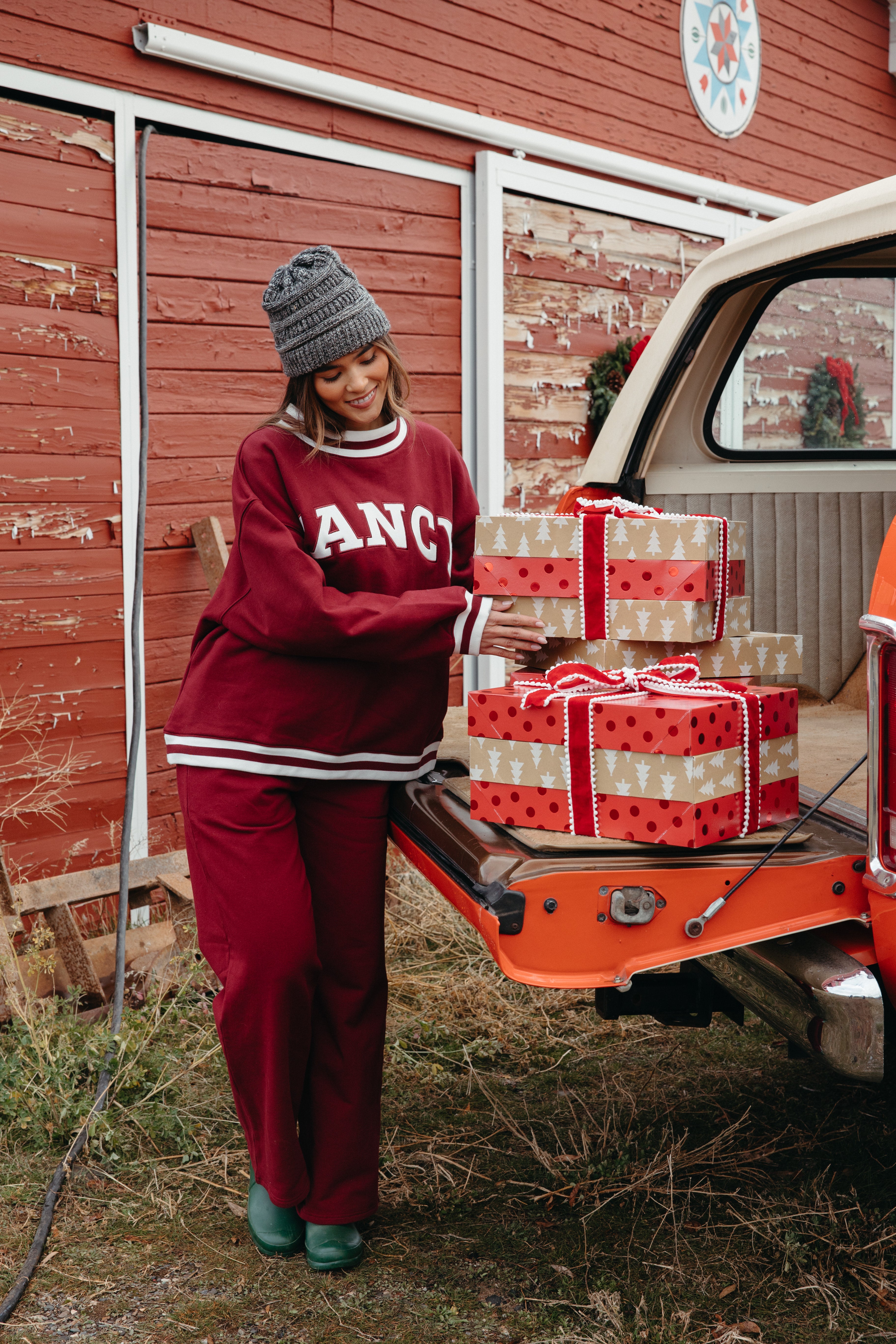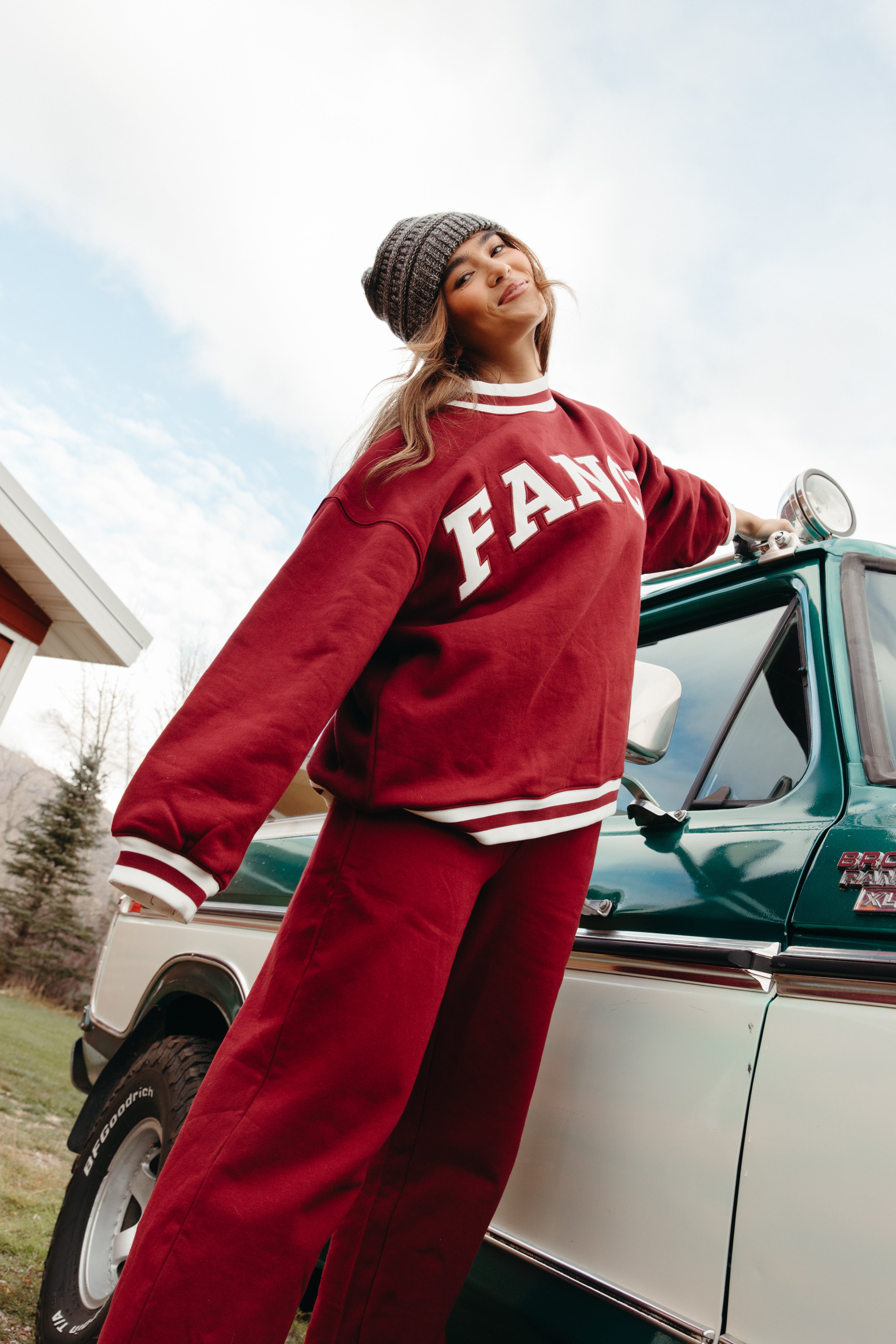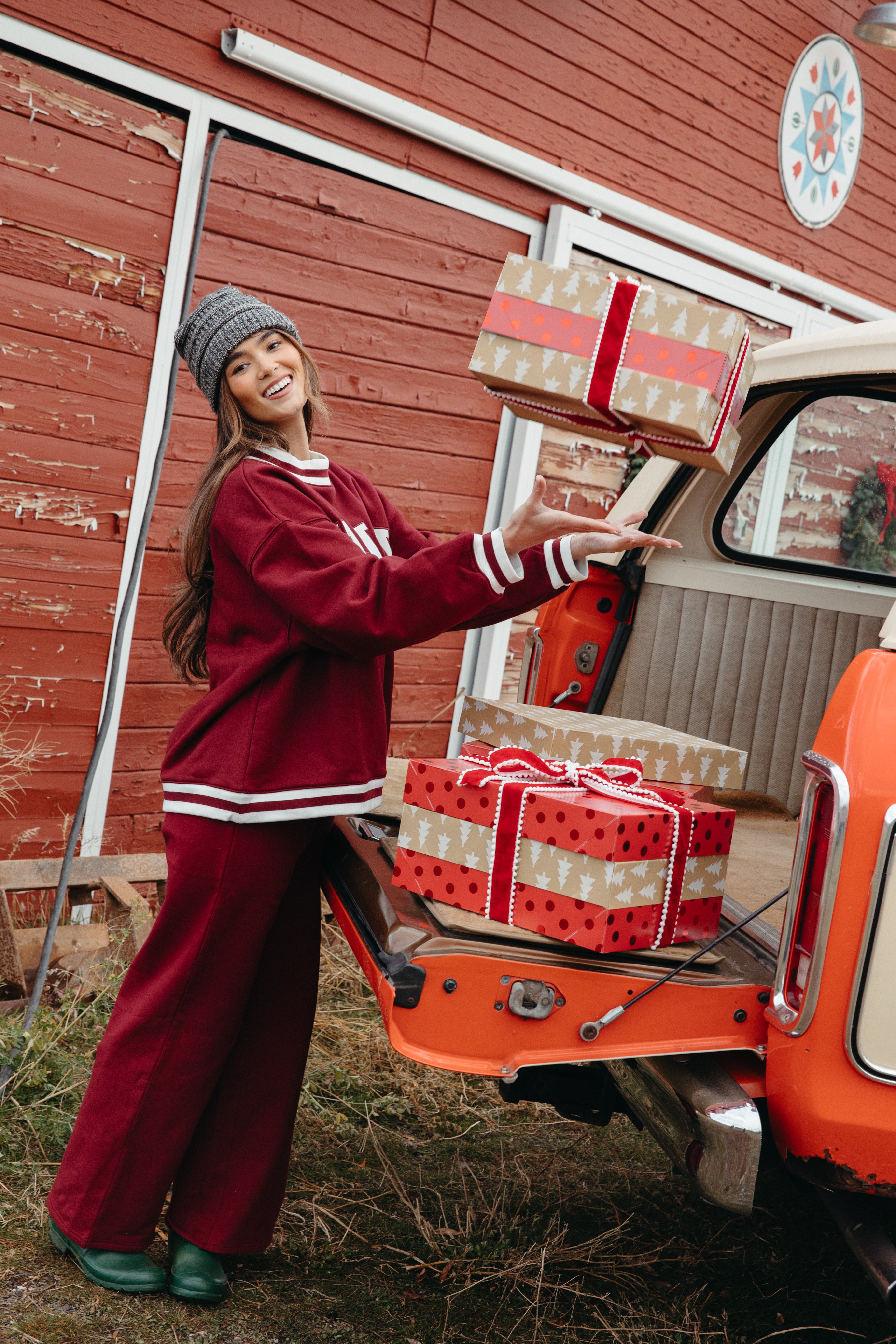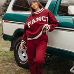 Fancy Fleece Wide Leg Sweatpants - Rich Burgundy