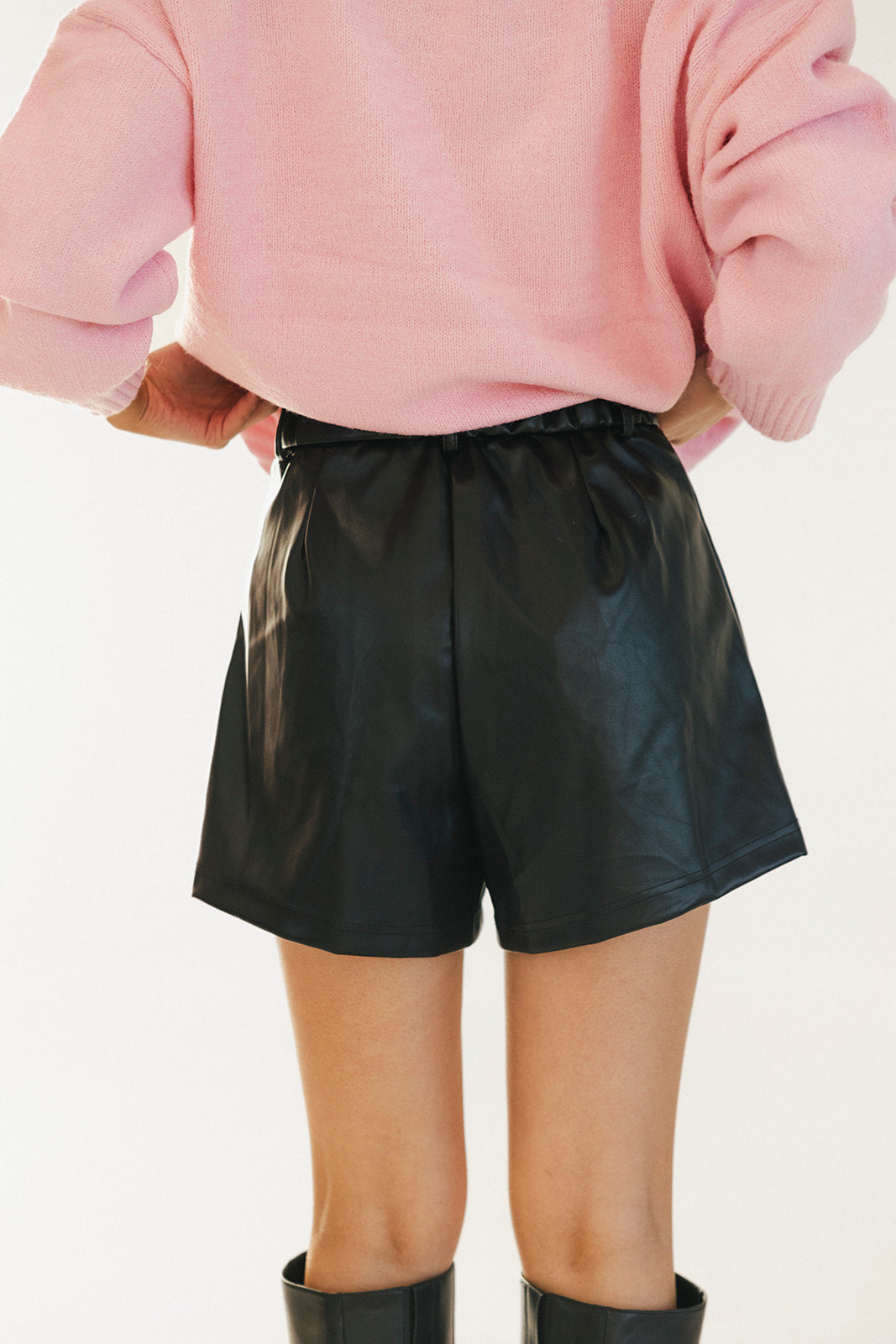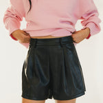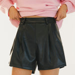 Introducing the Logan Pleated Leather Shorts in Black—a versatile piece that seamlessly transitions from casual to elevated looks. Constructed from a thoughtful blend of 50% PU and 50% Polyester, these shorts deliver both durability and comfort. The signature pleated detailing brings an understated elegance to your wardrobe, while the sleek black leather finish ensures you'll feel confident and polished no matter the occasion.