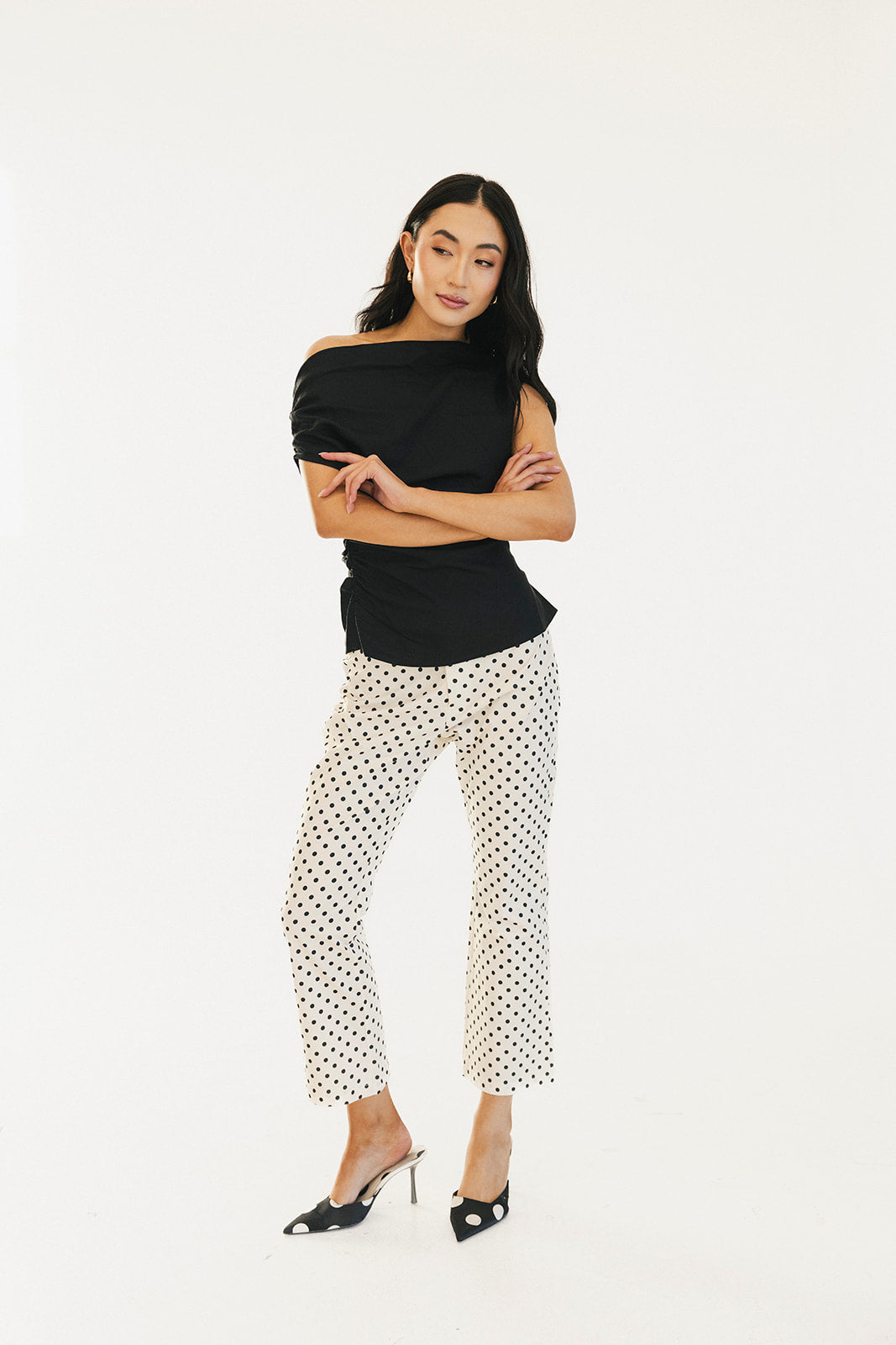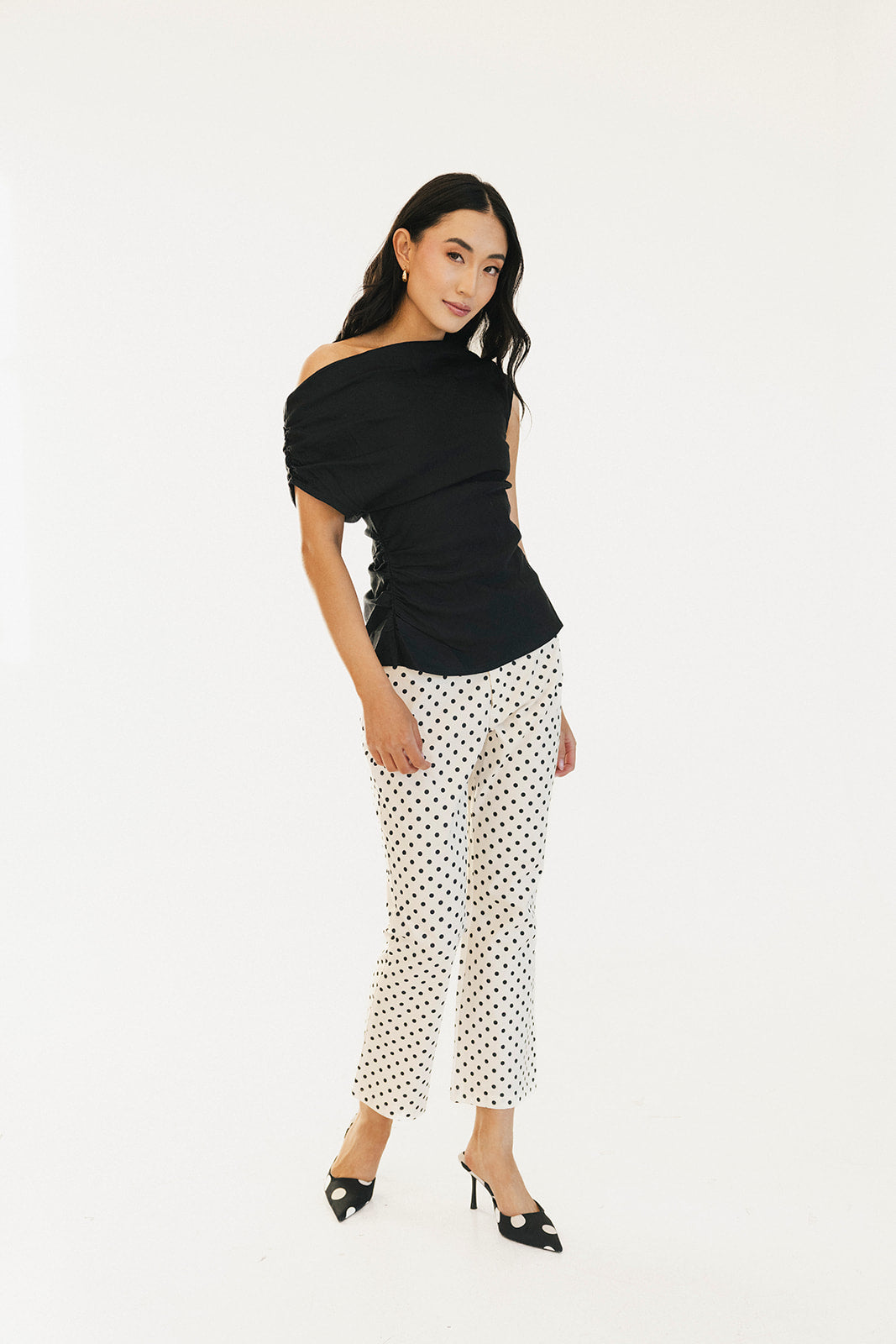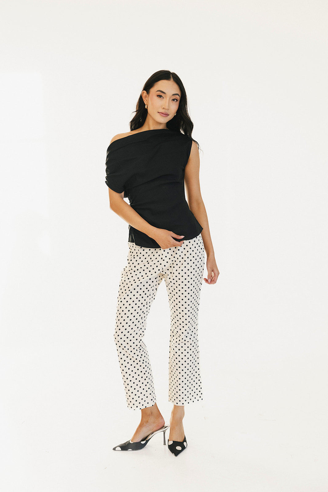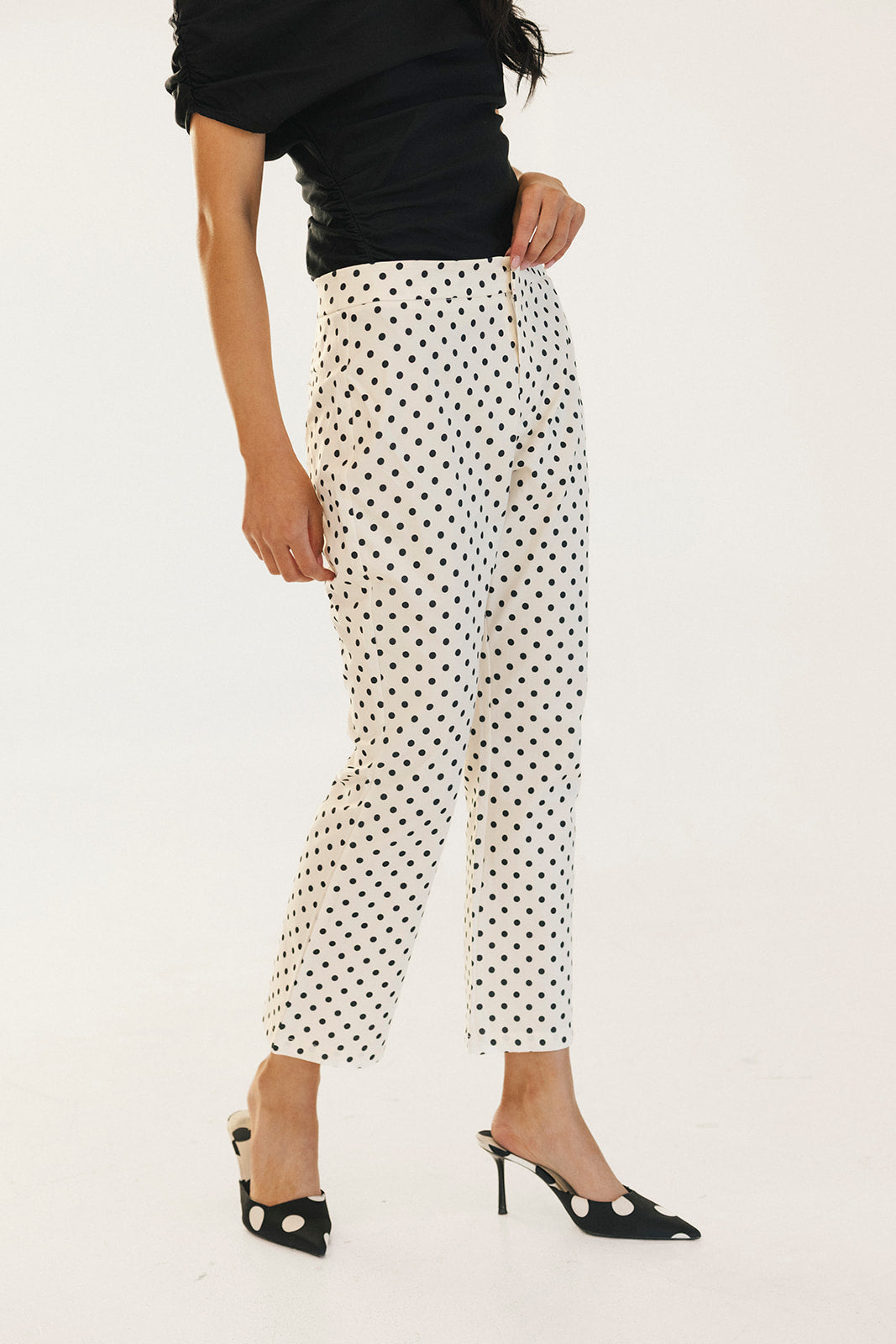 Virgina Polka Dot High Waisted Pants - White