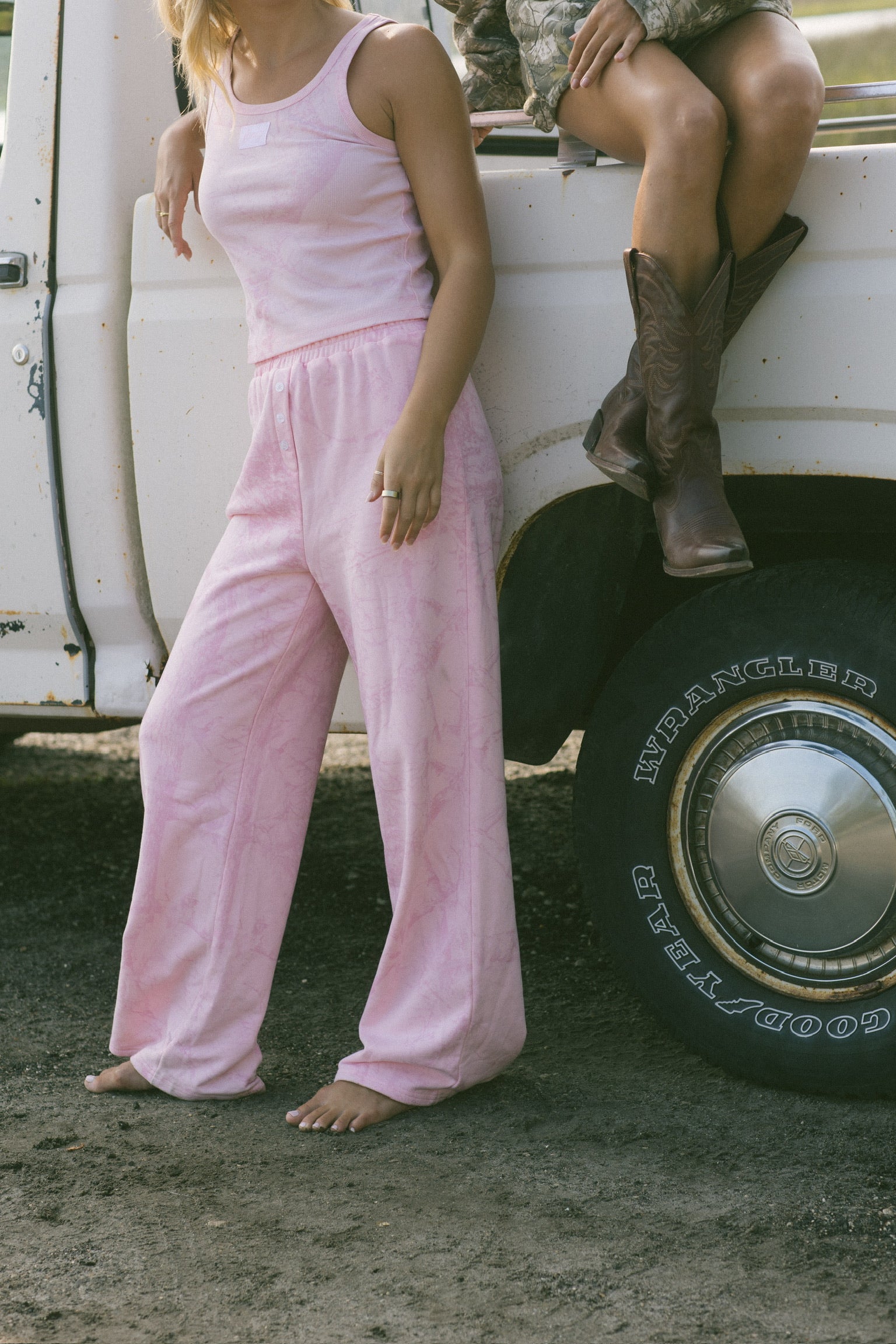 Model is wearing a XS/S mockneck and XS/S pants.