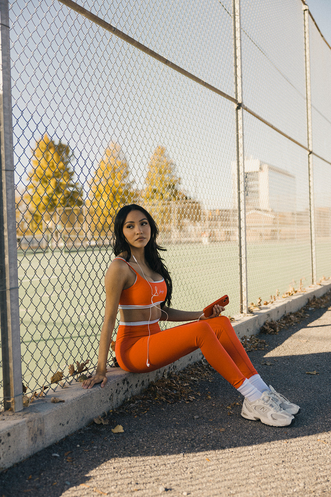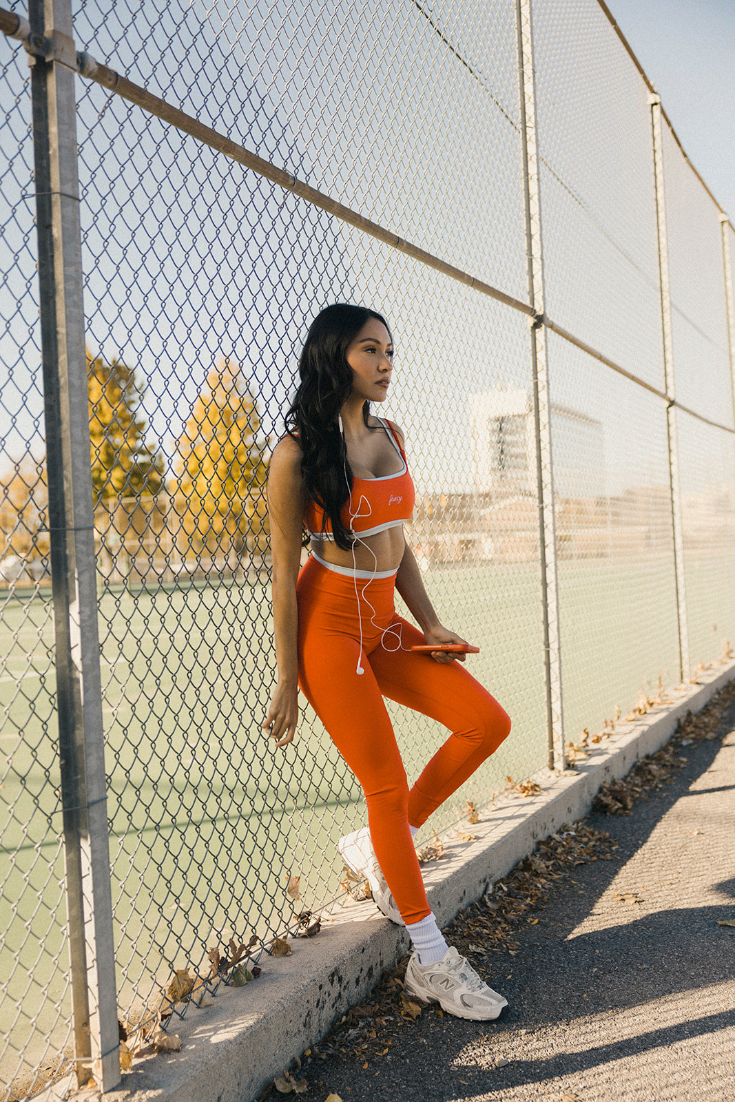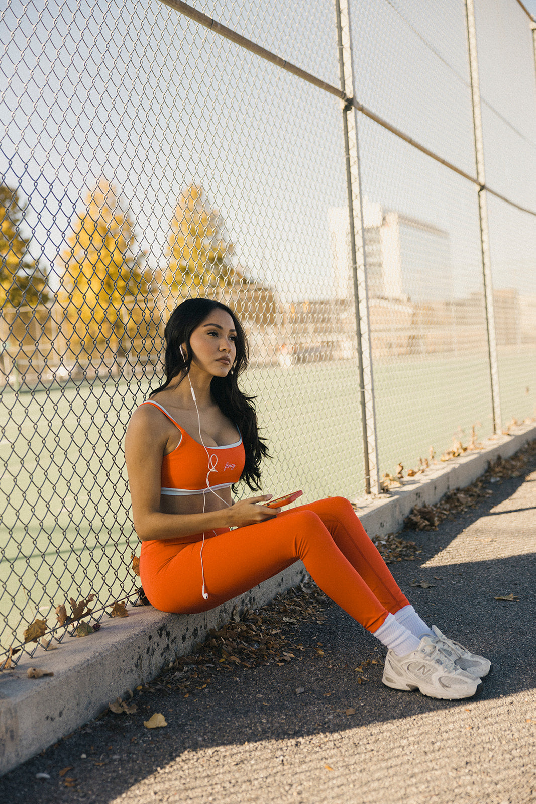 Fancy FitFlow Double Layered Athletic Bra - Orange/White