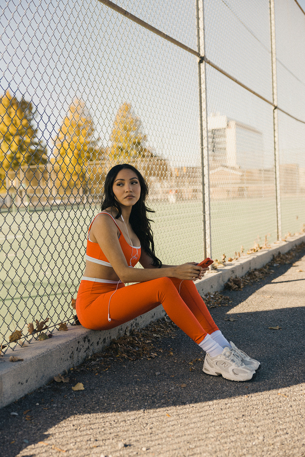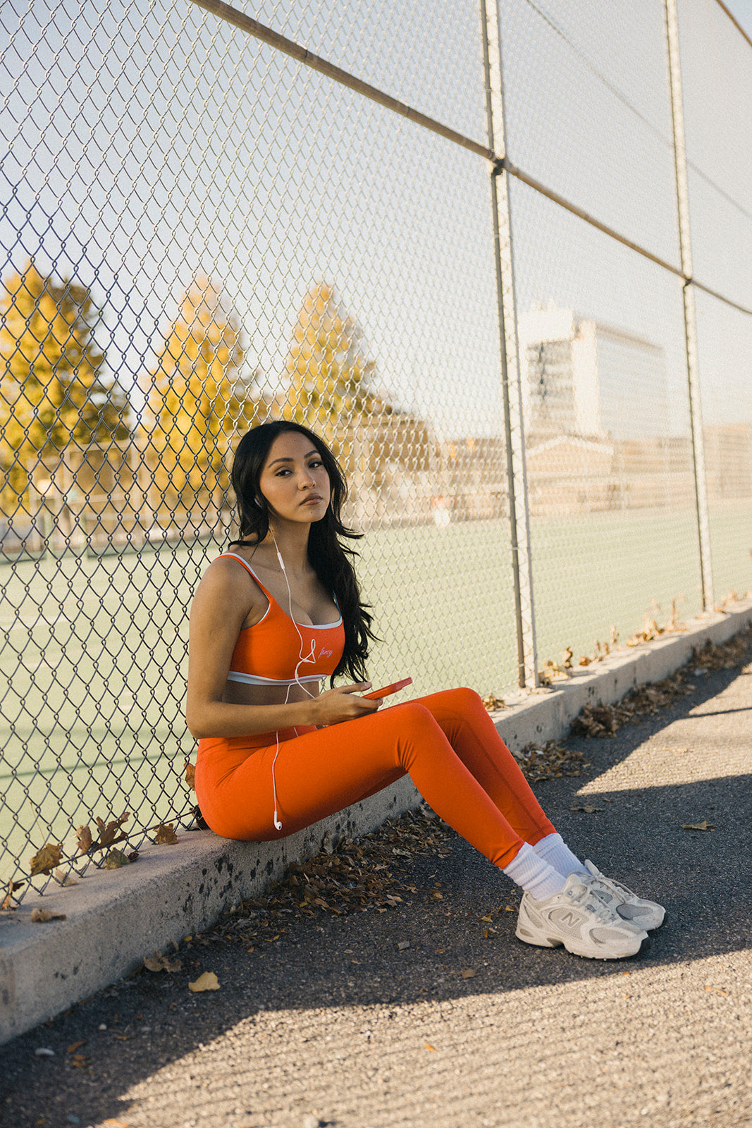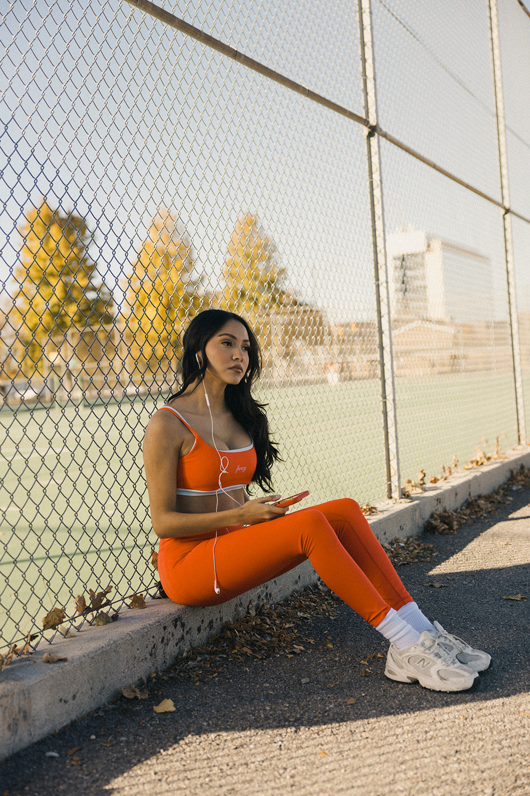 Fancy FitFlow Double Layered Athletic Bra - Orange/White