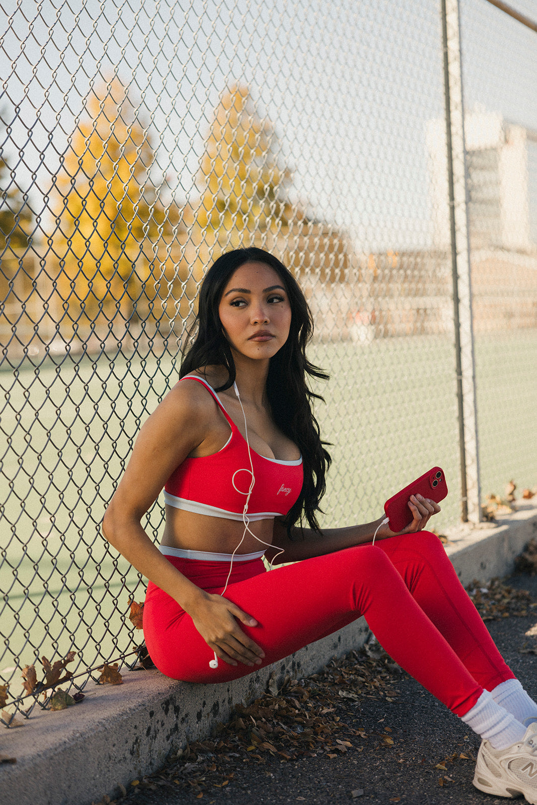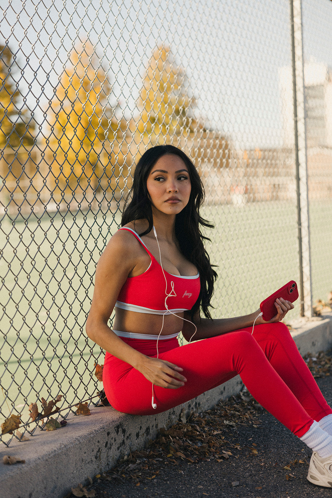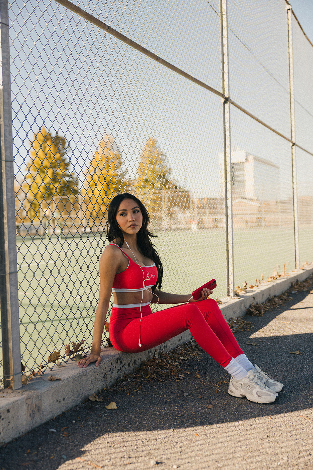 Fancy FitFlow Double Layered Athletic Bra - Red/Powder Blue