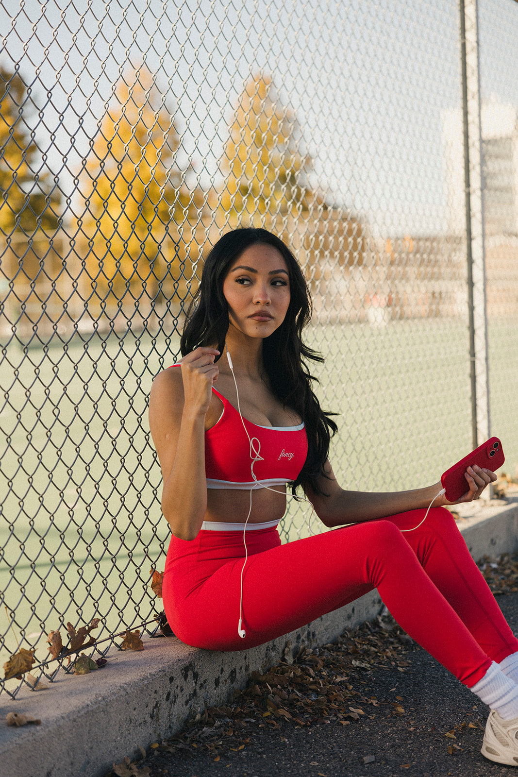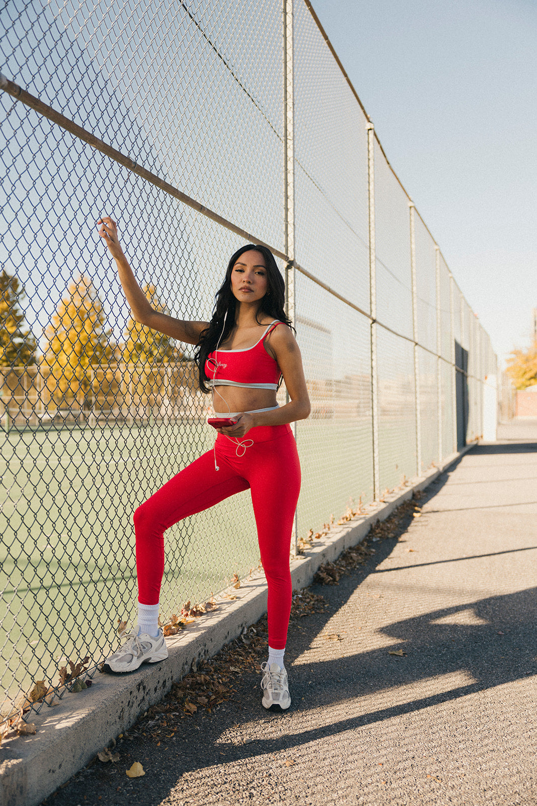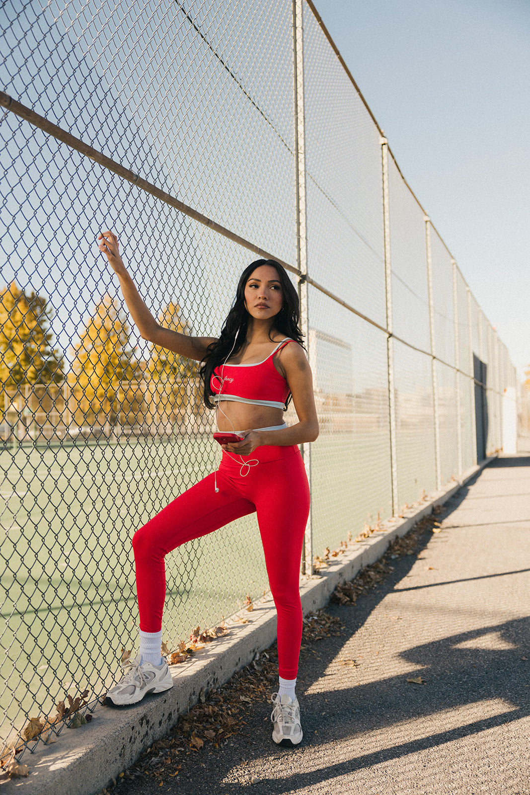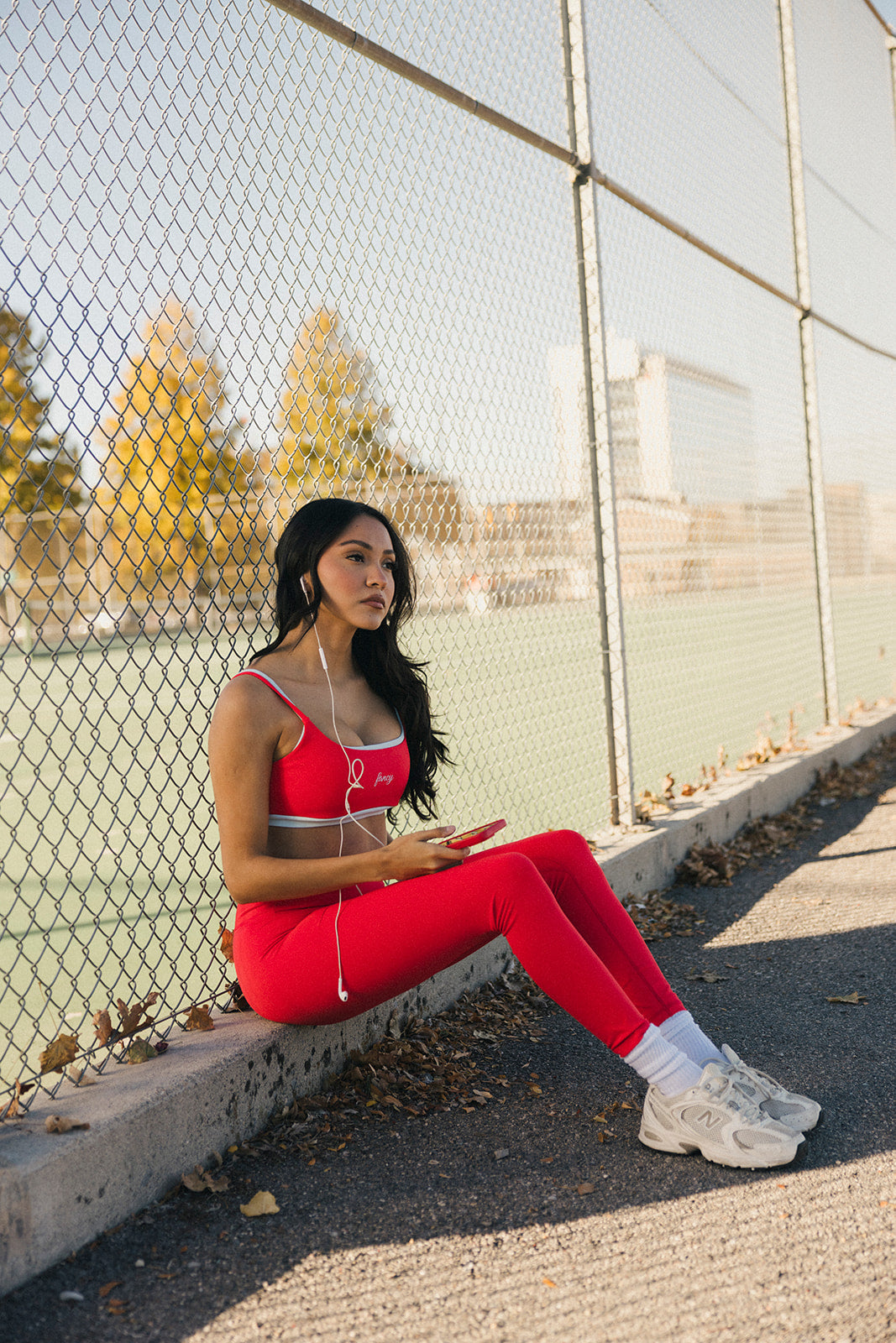 Fancy FitFlow Double Layered Athletic Bra - Red/Powder Blue