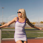 Discover the Fancy FitFlow tank in Lilac with Purple Outline, designed for comfort and style. Featuring a subtle stripe in a complementary white tone along the side, this tank offers a flattering fit that moves with you. Perfect for active days or casual outings, it combines practicality with a fresh, vibrant look to keep you feeling confident and supported.