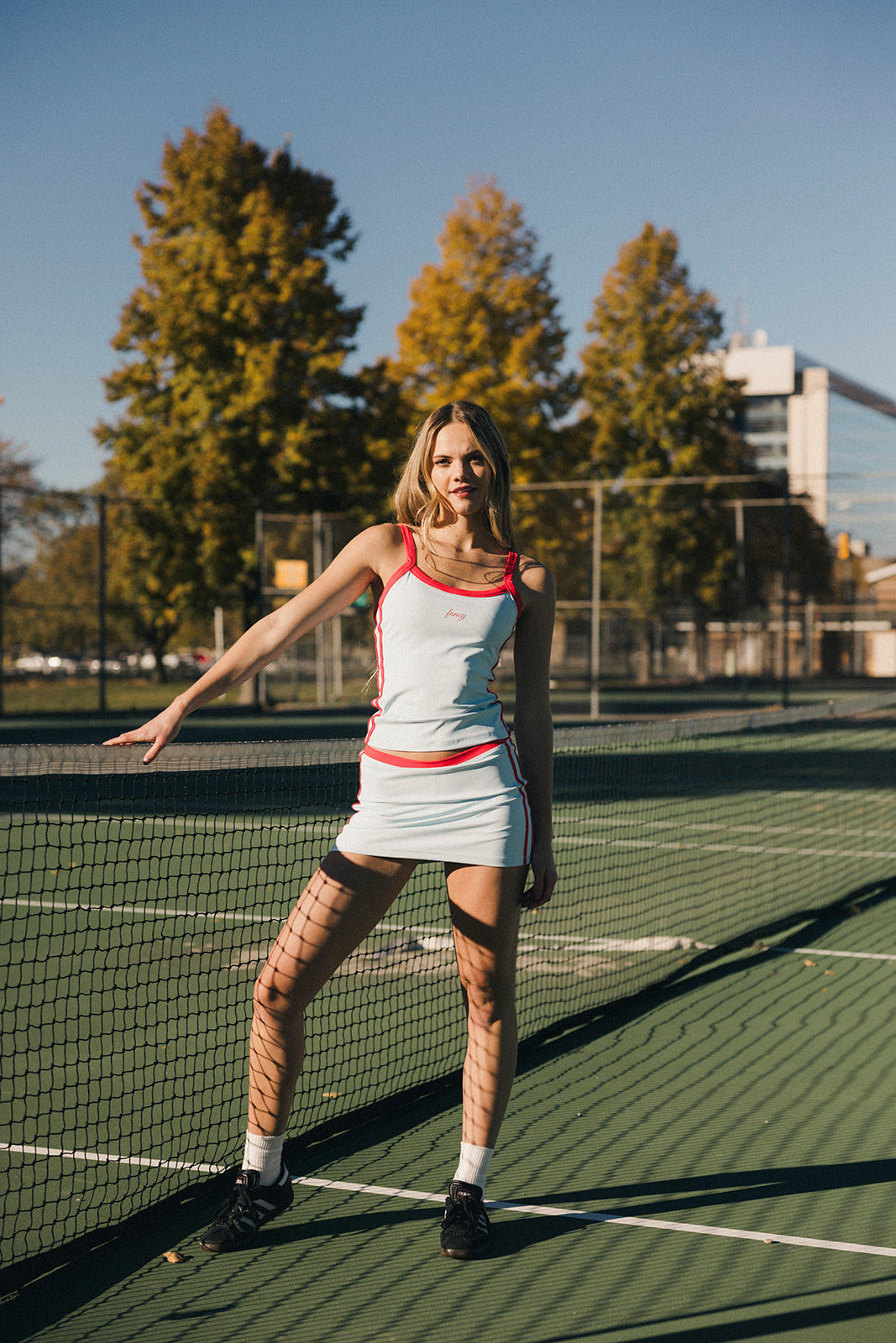 Fancy FitFlow Outline Tank - White/ Crimson Red