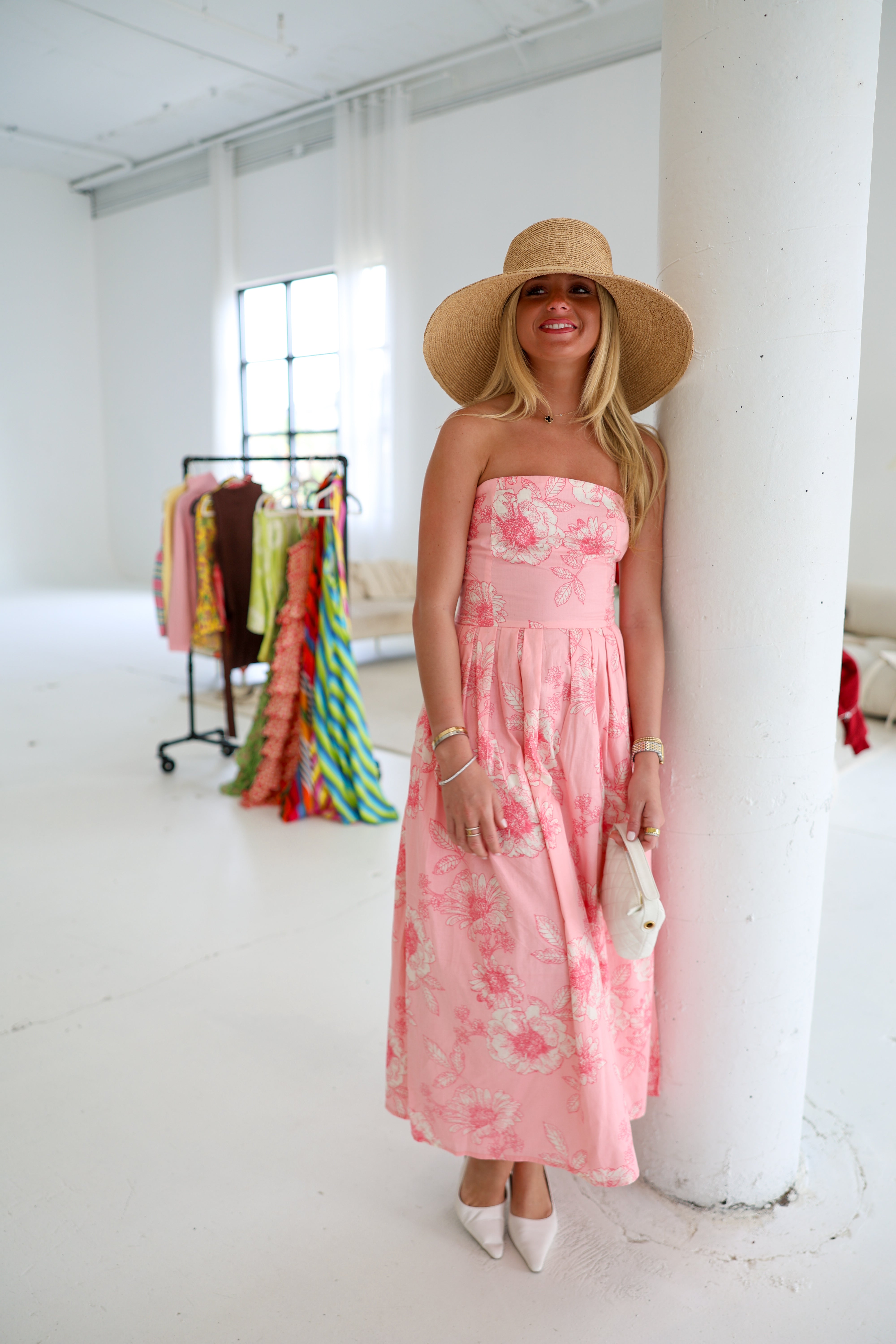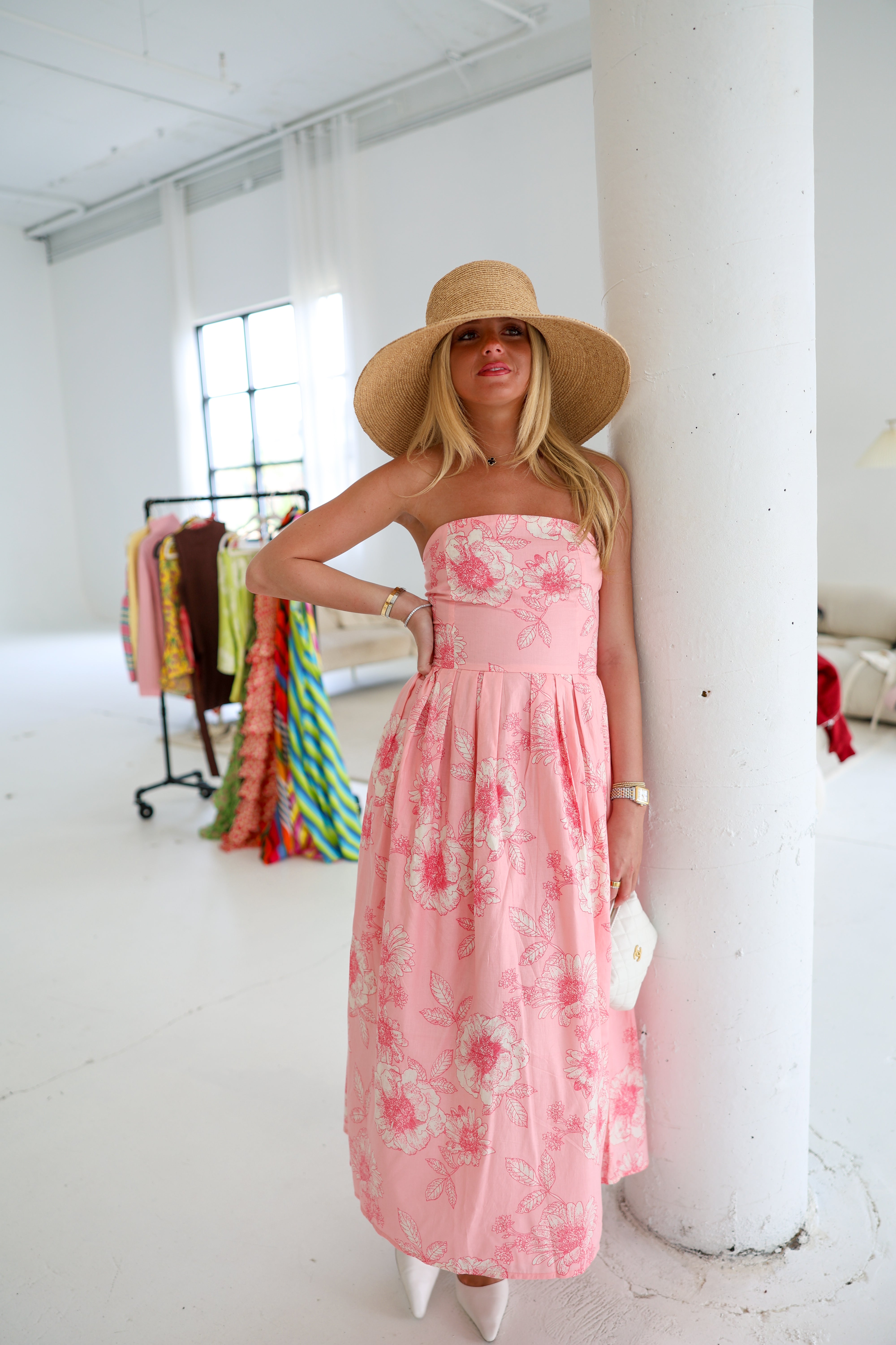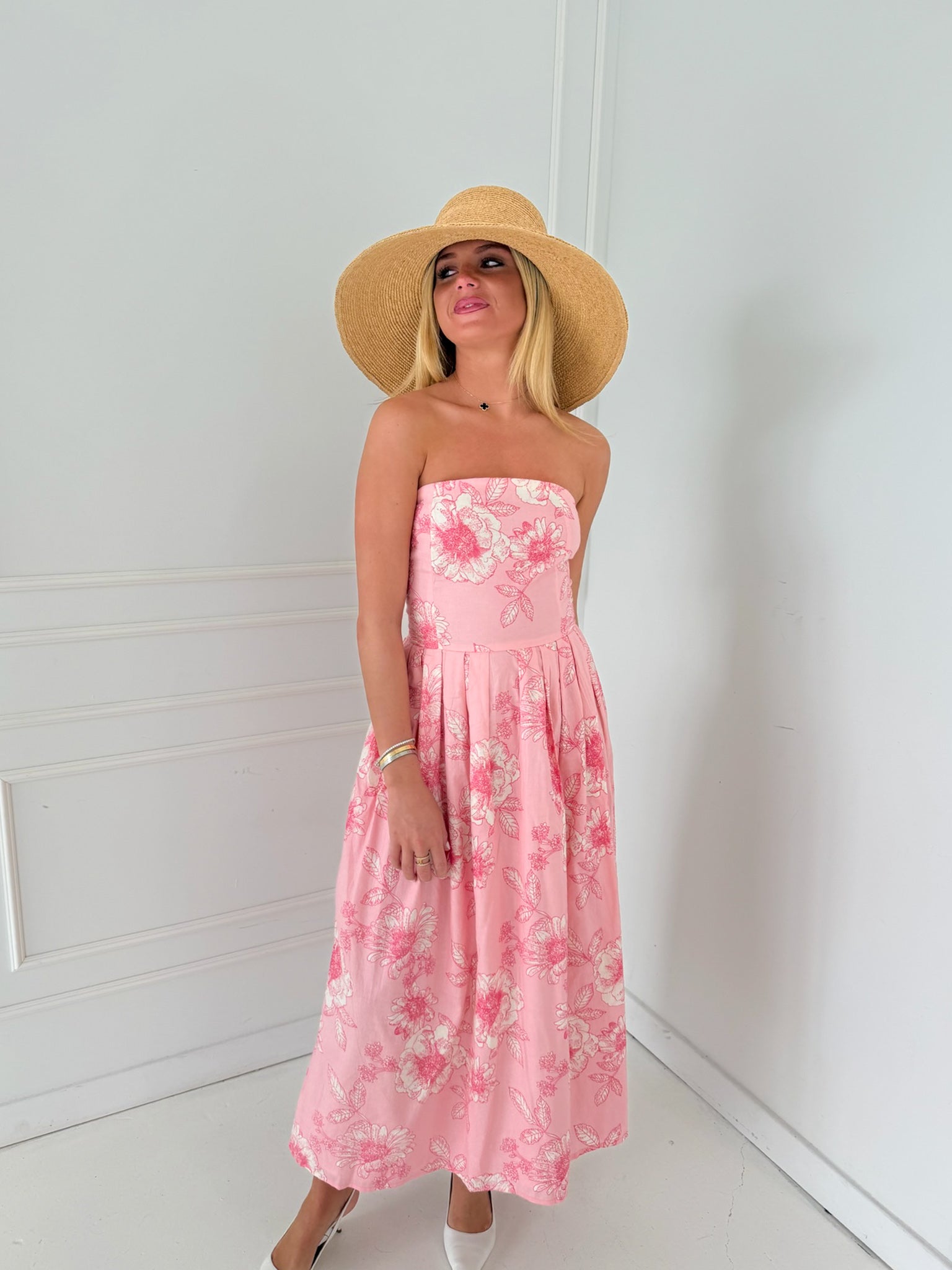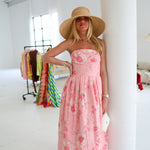 Madeline Strapless Midi Dress - Pink Floral