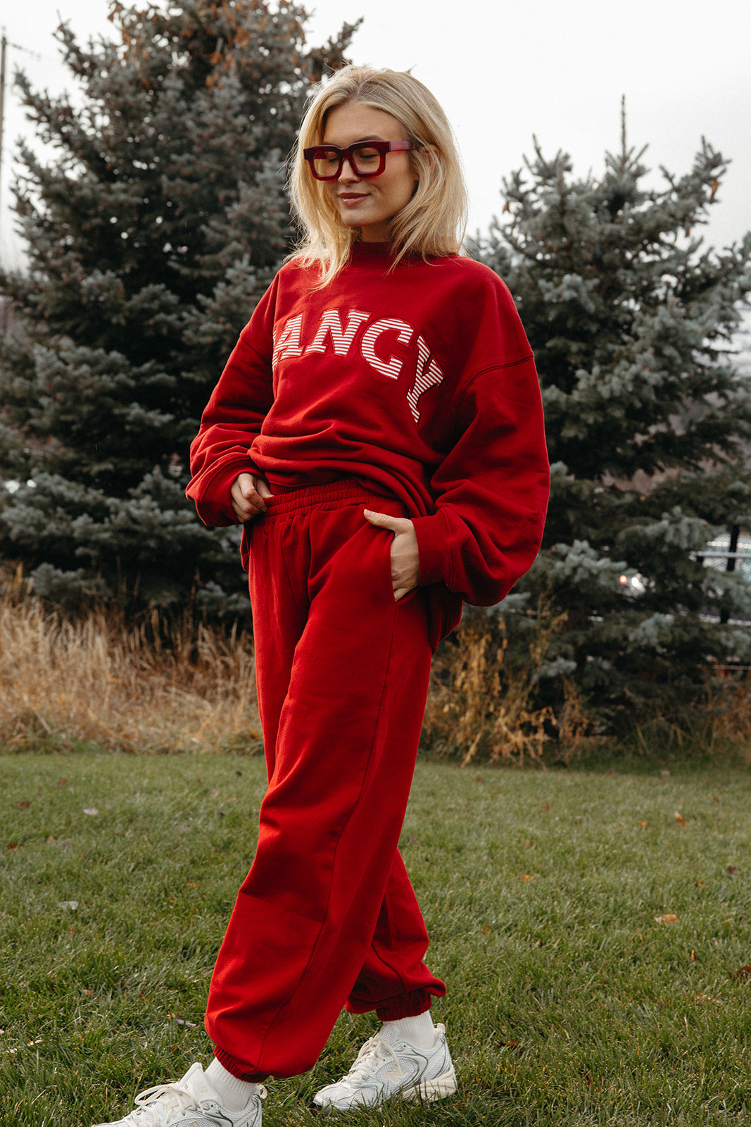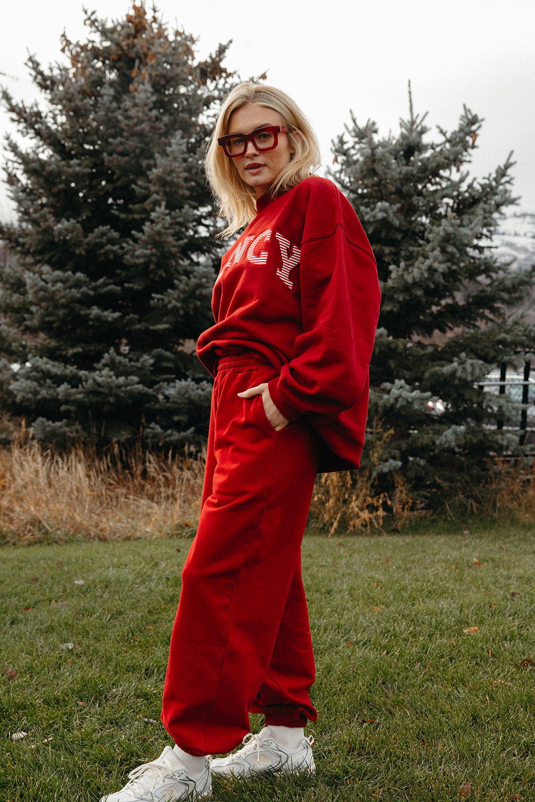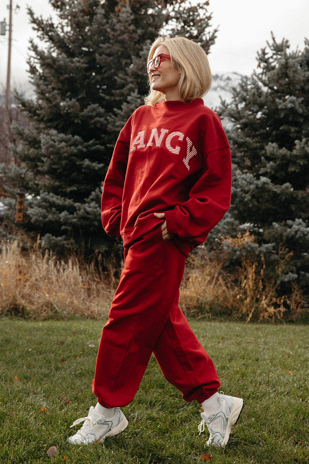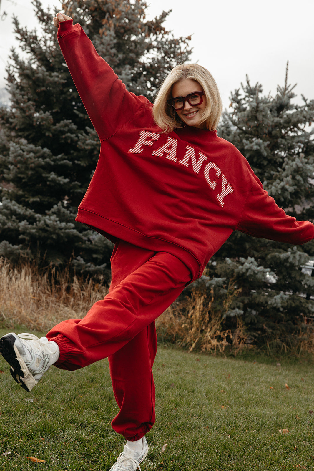 Fancy Fleece Cuffed Leg Sweatpants - Jolly Berry