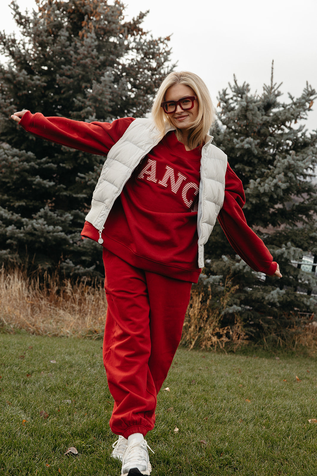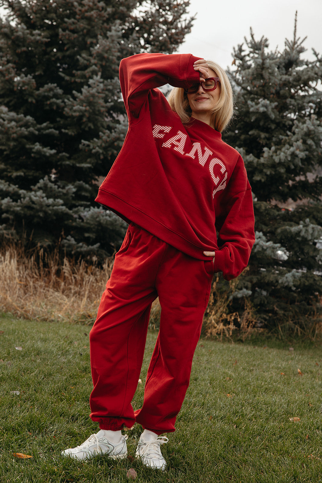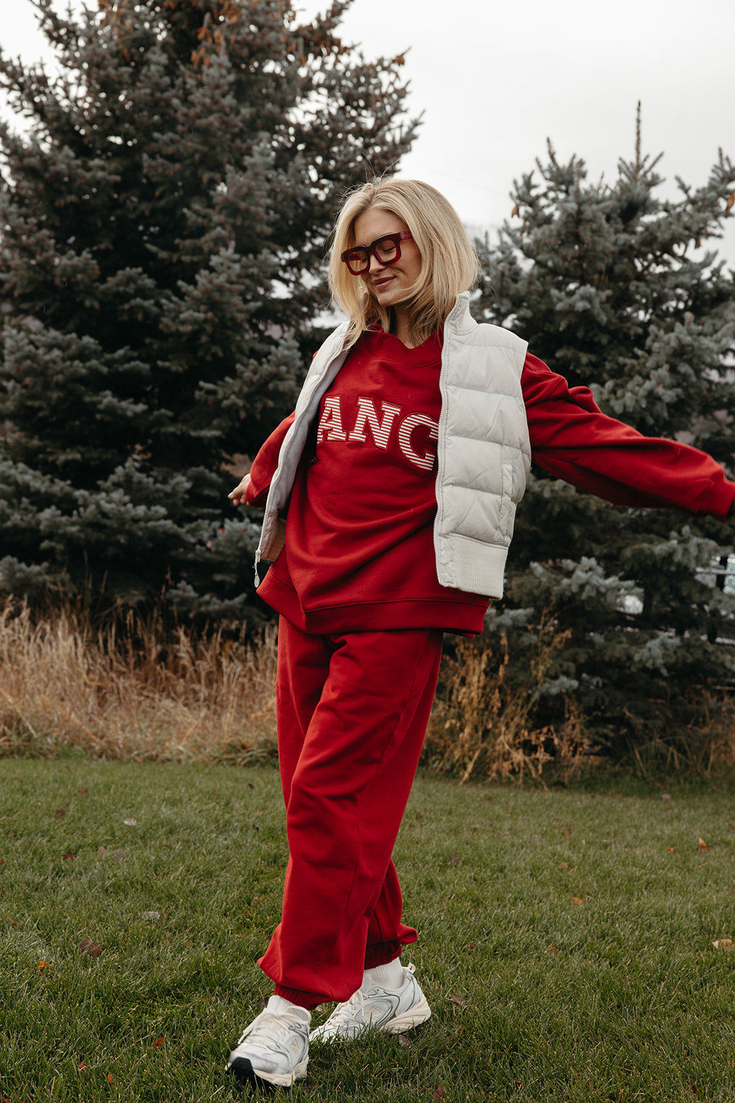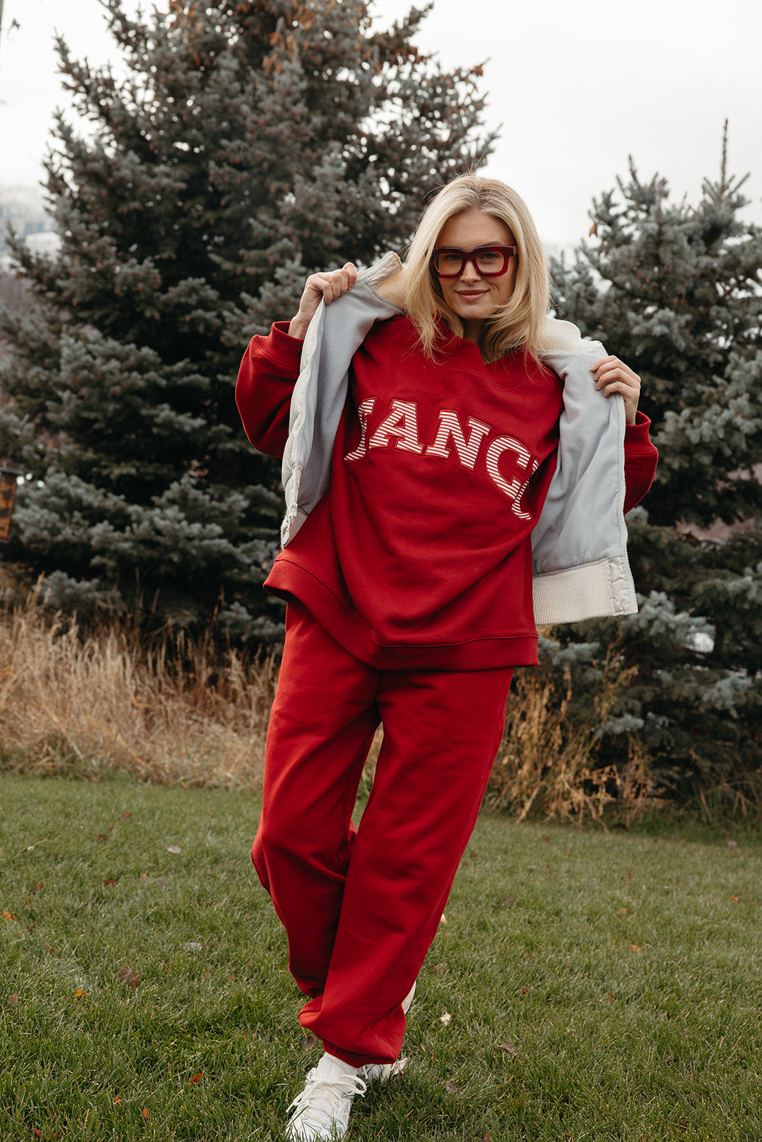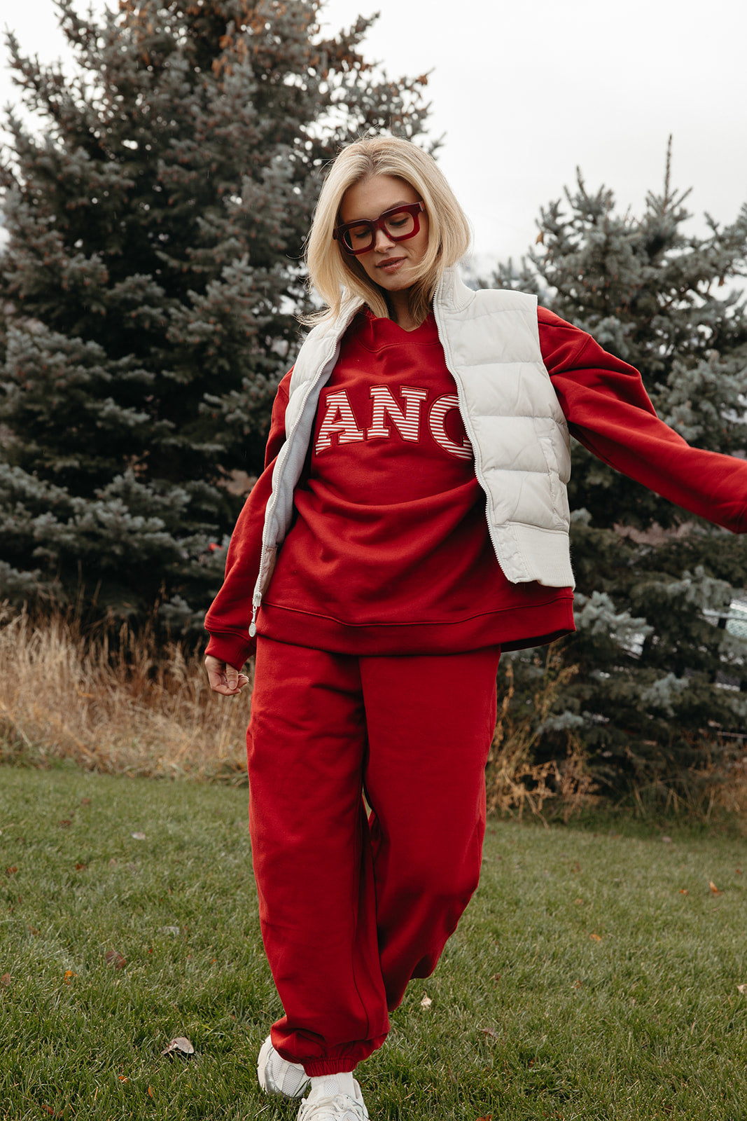 Fancy Fleece Cuffed Leg Sweatpants - Jolly Berry
