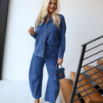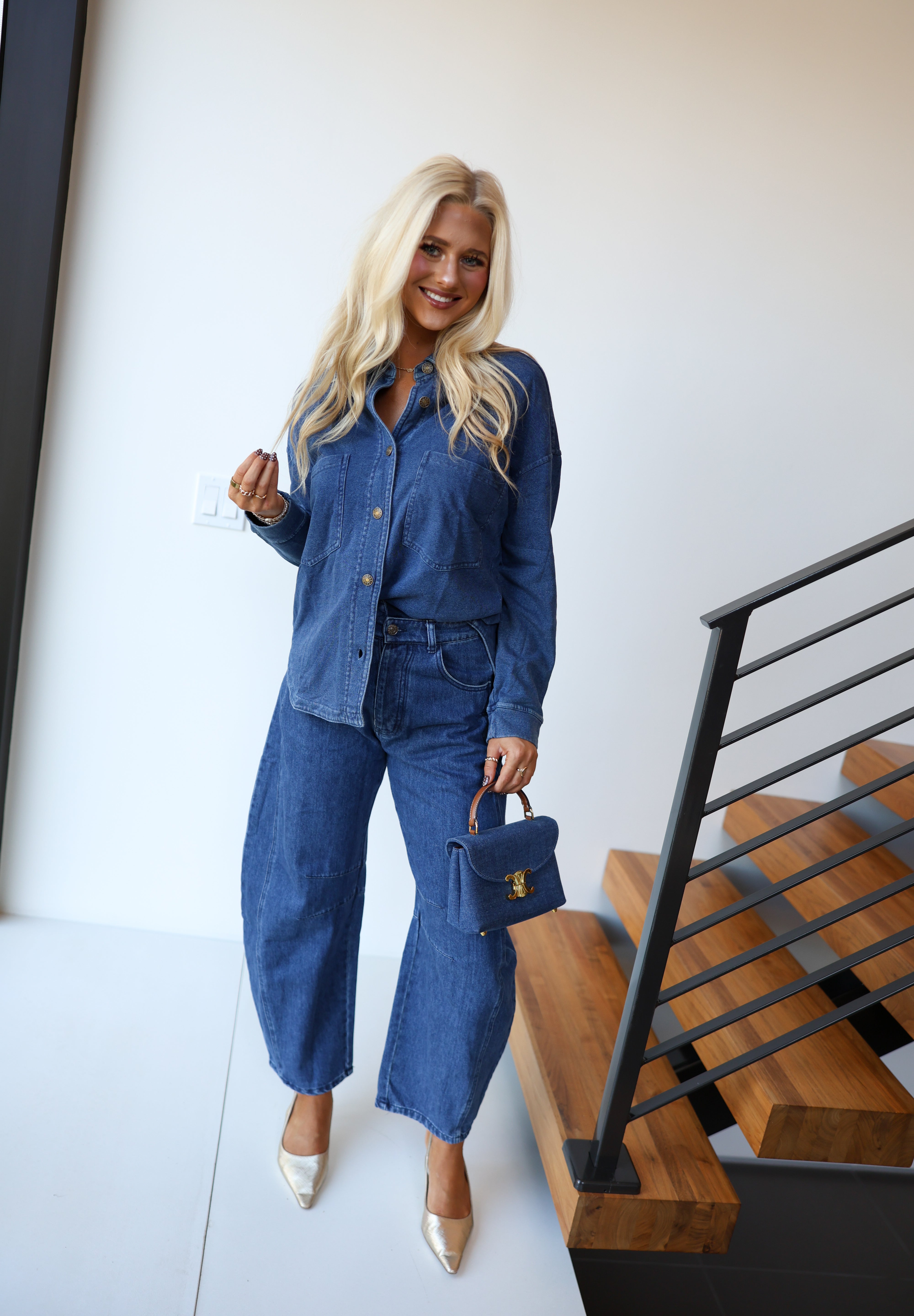 The Dani Denim Button Down Top is an ideal match for fall, designed to complement our Susan Baggy Jeans in denim perfectly. Crafted to offer comfort and style, this top layers effortlessly while adding a classic touch to your seasonal wardrobe. Pair them together for a cohesive, relaxed look that supports your casual, everyday style.