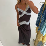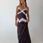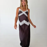Lexi Lace Trim Midi Dress - Brown