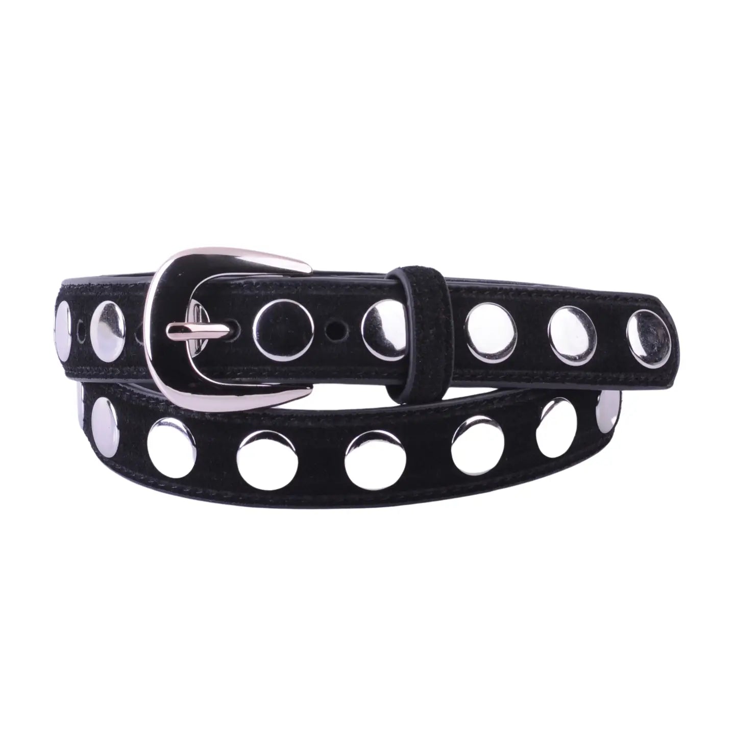 Suede Belt with Wide Studs - Black