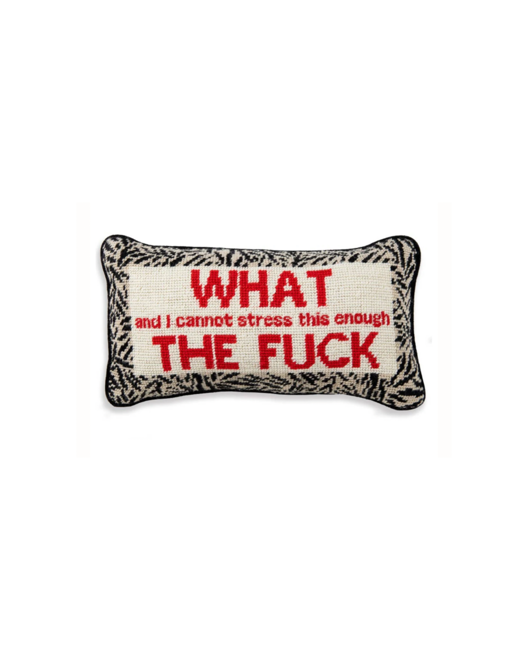For the ones who need to express their absolute disbelief. This pillow is for those who say, ‘What (and I cannot stress this enough) the fuck,’ because some moments just leave you speechless—and questioning everything. Embrace the latest joy-inspired decor movement, and transform your home with Furbish Studio’s Needlepoint and Statement Pillows.