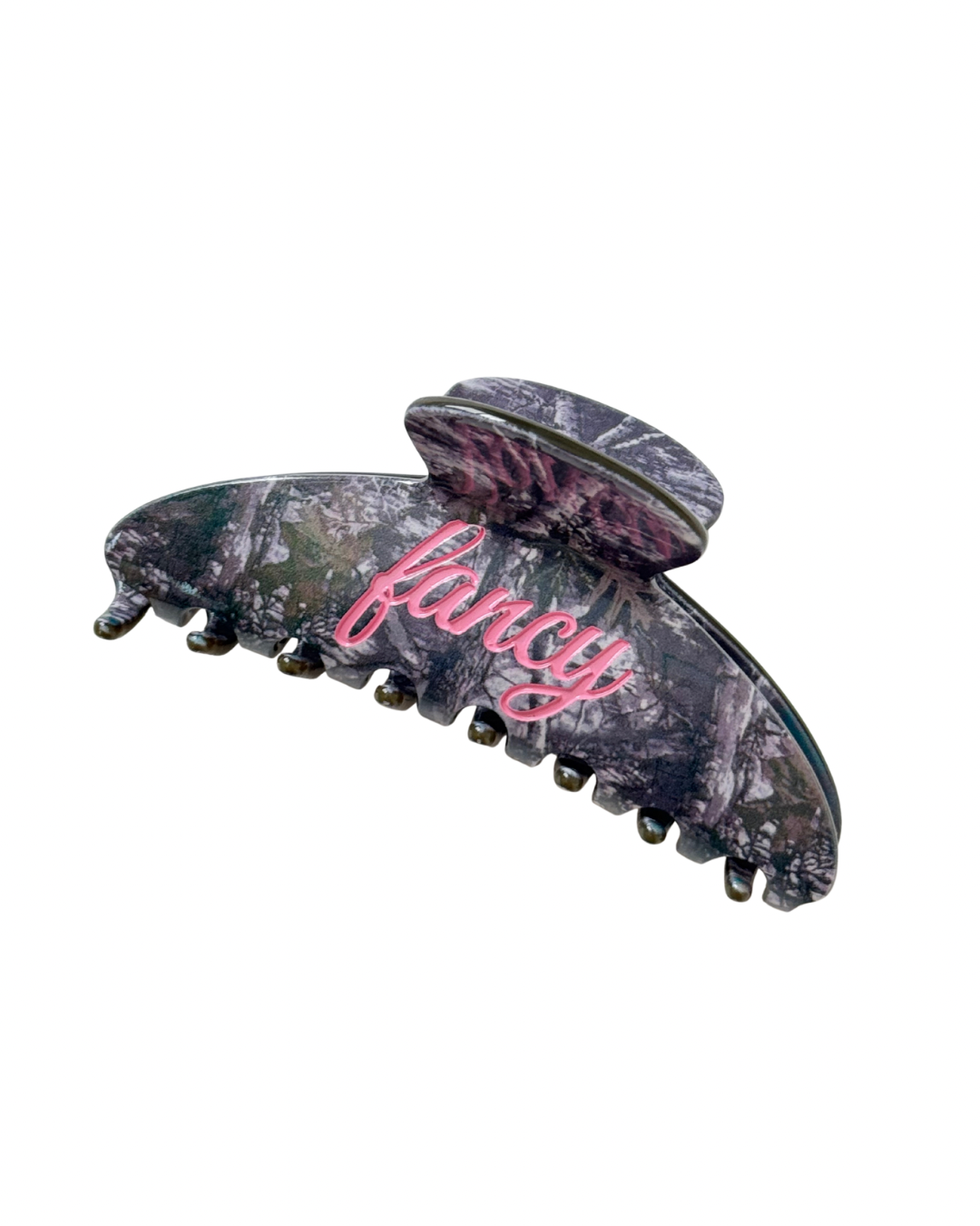 The Fancy Claw Clip in Camo offers a secure hold with its strong grip, perfect for keeping your hair neatly styled throughout the day. Its subtle camo pattern adds a stylish touch while being versatile enough for both casual and polished looks. Designed for comfort and durability, this claw clip helps you maintain effortless hair control with confidence.
