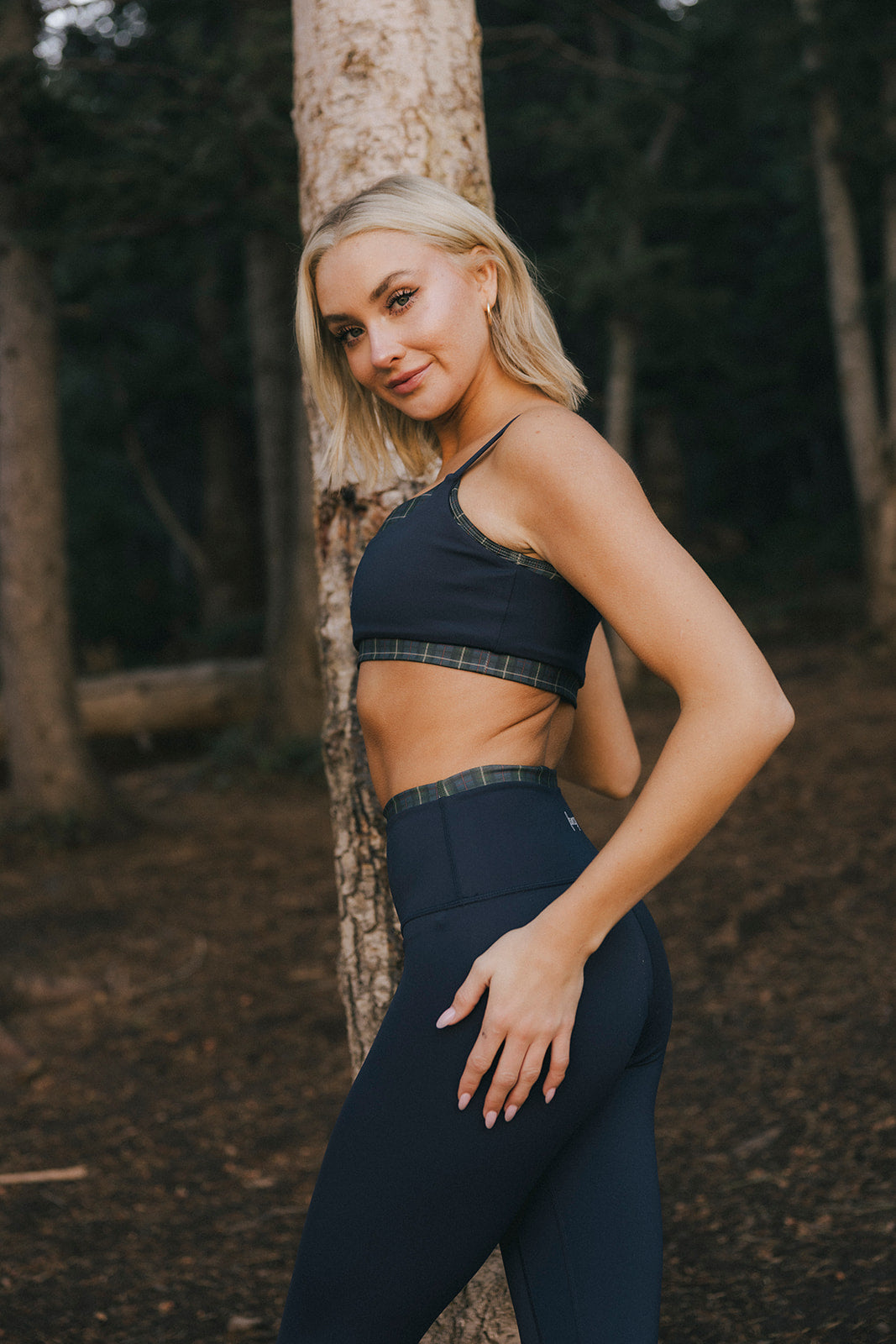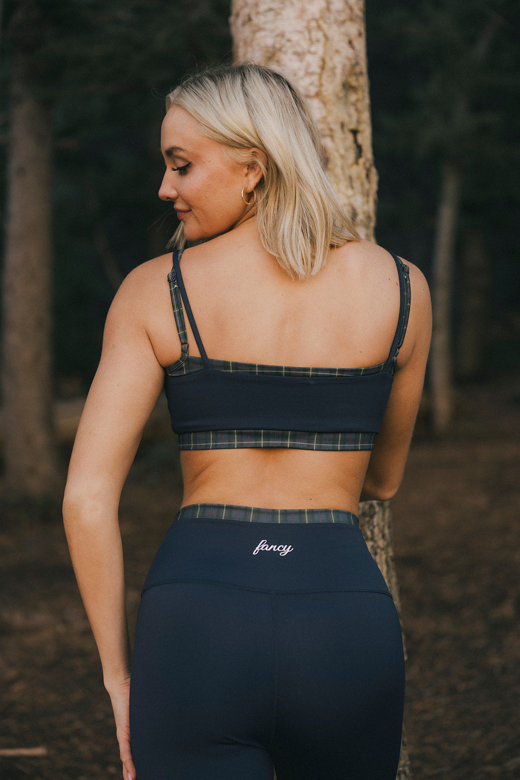 Fancy FitFlow Double Layered Athletic Bra - Navy/Plaid