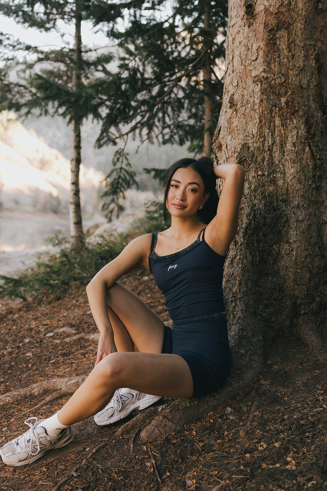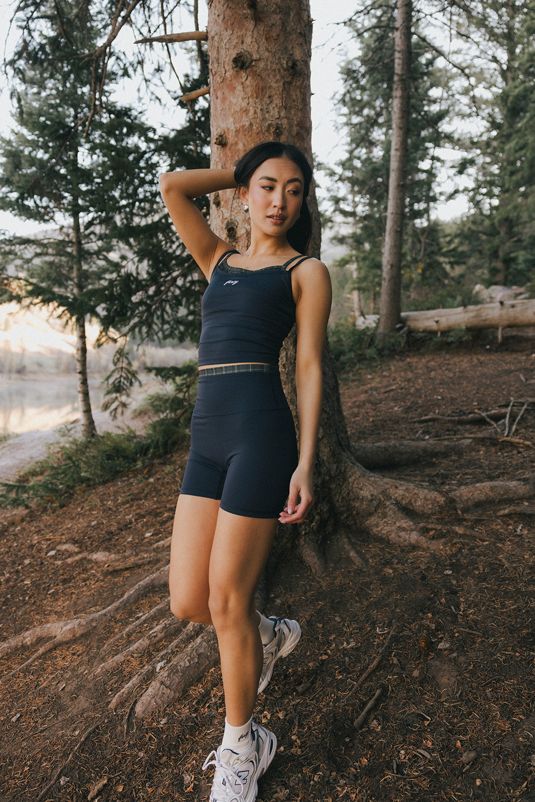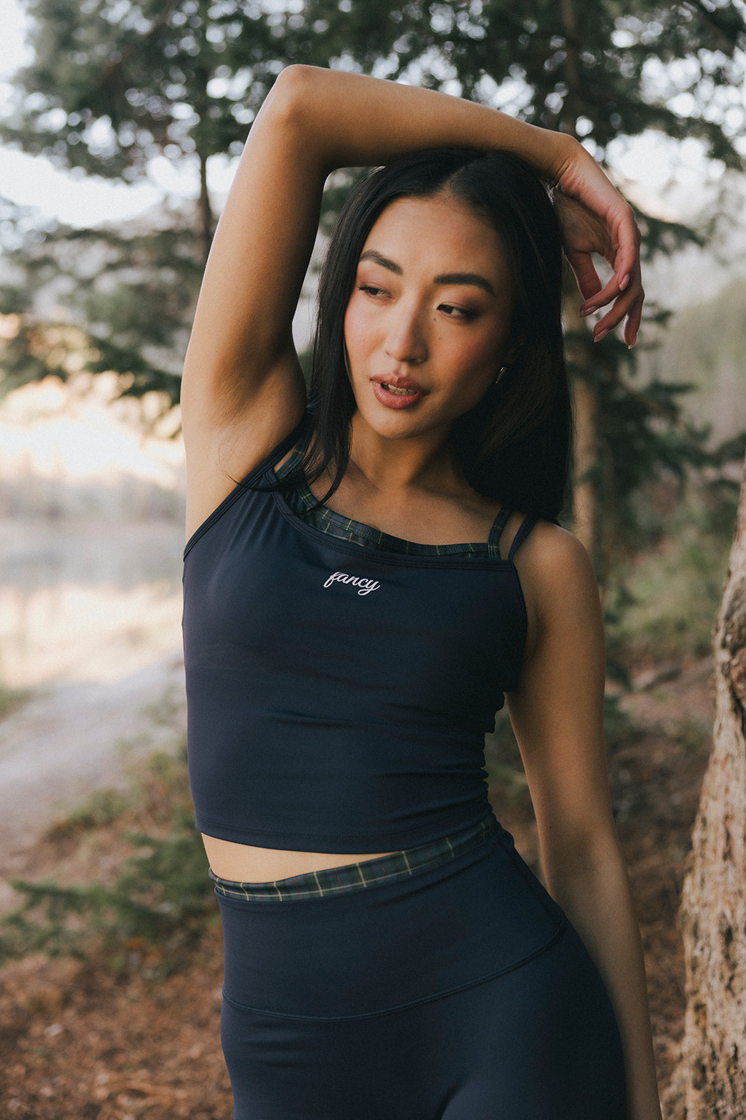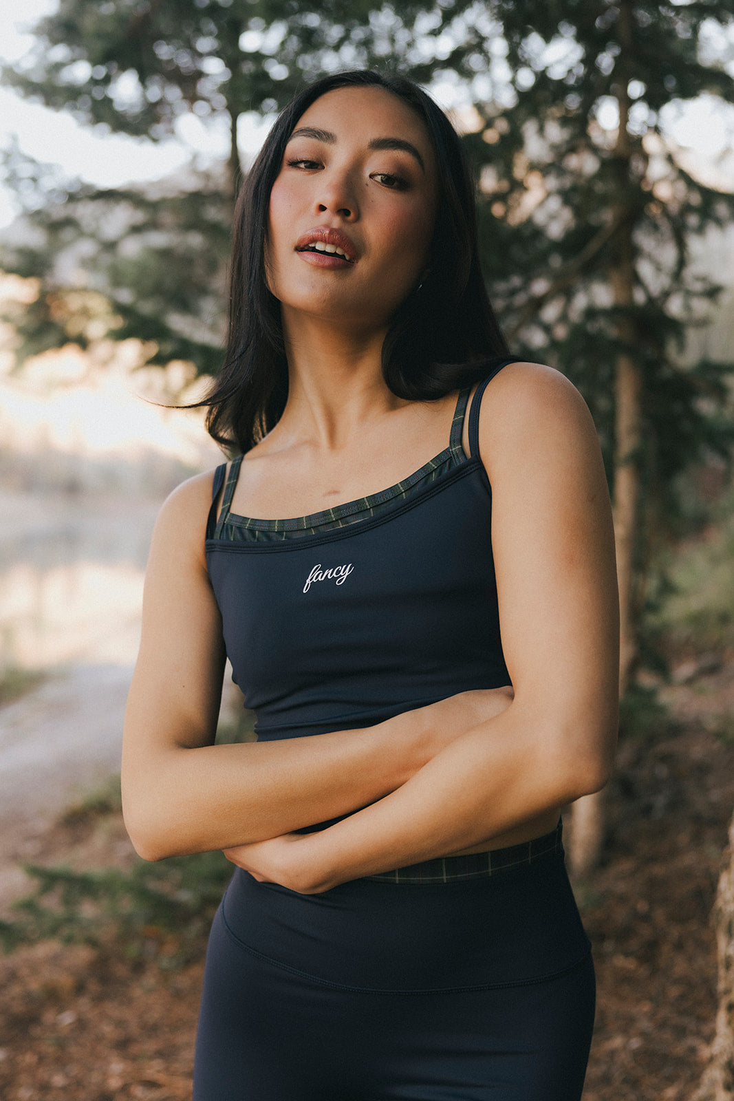 Discover the Fancy Fit Double layered in Navy and Plaid, designed for comfort and style. These double layer tank offers a flattering fit that moves with you. Perfect for active days or casual outings, it combines practicality with a look to keep you feeling confident and supported.
